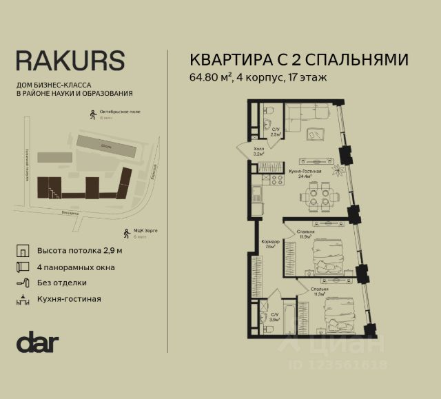 Продаётся 2-комнатная квартира 54.00 м² в жилом комплексе Ракурс. Квартиру отличают панорамное остекление, потолки 2,9 м, улучшенная шумо и воздухоизоляция. Дом сдаётся в 1 квартале 2028 года, продажи проходят через эскроусчета. Подземный паркинг, коворкинг, закрытая благоустроенная территория с фонтаном и артобъектами. Гибкие условия покупки. Rakurs — место, в котором жизнь приглашает к исследованию. Концепция проекта knowledge-centric среда, которая выражается здесь в образе жизни: • атмосфере интеллектуальной среды, • доступности образования, • фокусе на возможности для развития. RAKURS разместился в районе науки и окружен исследовательскими институтами и образовательными учреждениями, при этом на территории построена своя школа с уникальной концепцией. Расположенный на пересечении улиц Маршала Бирюзова и Берзарина, недалеко от станций метро "Октябрьское поле" и "Зорге", дом угождает транспортной доступностью автомобилистам и пешеходам. Инфраструктура же района создана с заботой о людях: здесь много парков, кафе и других уютных мест для отдыха. В состав комплекса входят три башни высотой 18, 26 и 44 этажа, каждая из которых имеет свой запоминающийся силуэт. Между собой башни связаны среднеэтажными строениями с индивидуальными фасадами. Композиция и пластика корпусов, а также панорамное остекление башен обеспечивают квартиры максимальным количеством дневного света и выигрышными видами на центр города и Москву-Сити. Упор на функциональность не лишает проект его уникального образа — все башни имеют неординарную форму с харизматичными уступами и консолями. Rakurs предлагает широкий выбор уникальных вариантов жилья — от студий до эксклюзивных квартир с приватными террасами. Проект спроектирован с фокусом на биофильность и функциональность. Во дворах Rakurs можно насладиться завтраком на террасе кафе, игрой с детьми или спортом на свежем воздухе. В Rakurse cвой комьюнити-центр - многофункциональное пространство для работы, отдыха, общения и развития. Одна из важнейших частей центра — частная библиотека с лаундж-зоной. Книжный фонд отбирается для нее кураторской командой, а дизайн пространства сделан так, чтобы жители могли почувствовать умиротворяющую атмосферу библиотечного зала. Идея knowledge-centric среды поддерживается здесь и книжным магазином с лекторием, а также зонами для самостоятельной учебы и занятий с преподавателями. Продам 2-комнатную квартиру в ипотеку в новостройке станция Панфиловская (МЦК).