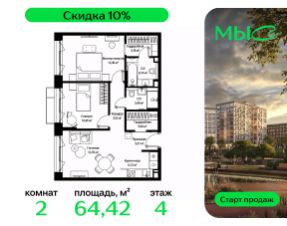 Продается двухкомнатная квартира 61.30 кв.м. в жилом комплексе EVO на 21 этаже по адресу: Московская область, г. Реутов, ул. Комсомольская. EVO - проект комфорт-класса от девелопера Dogma. Каждый житель сможет открыть для себя максимум возможностей. Совершенствоваться во всех направлениях: физическом, эмоциональном и материальном. В EVO можно открыть для себя новые виды спорта, найти единомышленников по хобби, партнеров по бизнесу, развивать в детях новые грани, наслаждаться природой и лаконичной архитектурой. Безопасность - Закрытая территория - Круглосуточное видеонаблюдение - Контроль доступа Расположение Пешком - 7 минут до станции Реутов - 20 минут до метро Новокосино На машине - 4 минуты до МКАД - 6 минут до шоссе Энтузиастов - 9 минут до Носовихинское шоссе - 13 минут до МСД (Московский скоростной диаметр) Более 6 га благоустройства в первой очереди - Зеленый двор без машин, кленовая аллея для прогулок - Нейродинамические площадки для детей разных возрастов - Workout зона, столы для пинг-понга, места для занятия йогой. велодорожки и дорожки для скандинавской ходьбы - Детский сад на 180 мест и школа на 750 мест - Кроссбукинг - Лобби с зоной ожидания, колясочной и лапомойкой - Магазины и кафе на первых этажах Окружение - Реутовский центральный парк, Александровский сквер, Фабричный пруд - ТЦ "Экватор", ТК "Шоколад" - Спортивный комплекс "Старт", Ледовый комплекс "Реутов Арена" - Музей-усадьба "Кусково" Социальная инфраструктура В первой очереди предусмотрено строительство детского сада на 180 мест и школы на 750 учащихся. В 10 минутах ходьбы от EVO находится детский технопарк "Изобретариум", в котором более 60 научных секции: от IT до промышленного дизайна. Для творческих ребят рядом есть художественная и музыкальные школы, хоровая студия. Продам 2-комнатную квартиру в новостройке в Московской области.