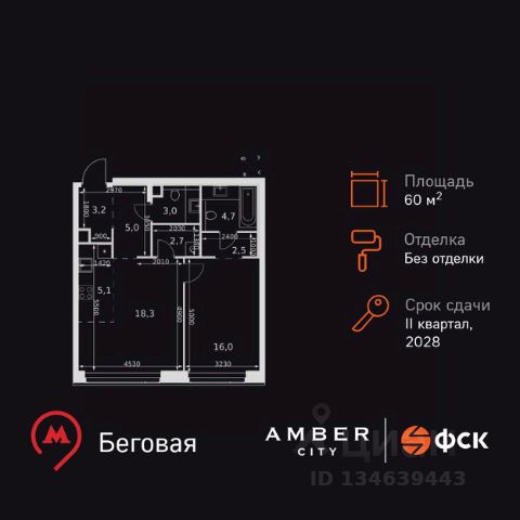 ИПОТЕКА 10% ДЛЯ ВСЕХ БЕЗ НАЦЕНОК! Прямая продажа от застройщика! Жилой Комплекс премиум-класса. Продаётся 2-к квартира номер 1296 общей площадью 45.6 кв.м. на 53-м этаже 57 этажного здания. Без отделки. Цена с учётом скидки. Особенности квартиры: - Мастер-зона с санузлом и гардеробной. Всё для вашего комфорта и удобства, включая личный санузел и гардероб. - Просторная спальня, в которой можно разместить большую кровать. - Линейная планировка - максимальная функциональность и удобство. - Увеличенная ширина окна/окон - больше света и визуального простора. - Увеличенная высота окна - больше воздуха и света. - Гостевой санузел - комфорт и удобство для ваших гостей. - Ниша под стиральную машину - удобство и экономия пространства. - Евроформат - просторное и удобное жилье с отличной планировкой. - Гибкая планировка - создайте пространство по своему вкусу. - Место для игры/занятия спортом - идеальное пространство для активных детей. - Линейная кухня - функциональность и практичность в одном решении. - Проходная кухня-гостиная - идеальное пространство для общения и готовки. - Гардеробная - удобство для хранения и организации вещей. - Ниша под шкаф - компактное и удобное место для вещей. Информация о комплексе: Amber City - это не просто квартал. Это место, куда ведут все маршруты, где рождается вдохновение работать и творить, где счастлива семья и жизнь кипит 24/7. Модная архитектура, высокотехнологичные решения и самодостаточная инфраструктура приближают Amber City к лучшим районам Гонконга и Нью-Йорка. Потрясающие виды на Москва-Сити и центр позволяют заряжаться их амбициозностью, не подчиняясь суете. Стремящиеся ввысь небоскребы, благоустроенный парк с зонами отдыха для взрослых и детей, а также многочисленные объекты инфраструктуры возводятся в западной части центра Москвы. Транспортная доступность: Квартал отличается исключительной транспортной доступностью: большая часть значимых мест Москвы находится на расстоянии 15-20 минут. Такое расположение позволит полностью погрузиться в деловую и культурную жизнь столицы и тратить на дорогу только необходимый минимум времени. Общественный транспорт: - Станция метро "Беговая" - 5 минут пешком - Станция "Беговая" (МЦД-1) - 5 минут пешком - Ж/д станция Беговая - 12 минут пешком - Остановка "2-й Хорошёвский проезд" - 3 минуты пешком - Станция метро "Звенигородская" (строящаяся) - 10 минут пешком На автомобиле: - Звенигородское шоссе - 3 минуты - TTK - 5 минут - Хорошёвское шоссе - 9 минут - Садовое кольцо - 12 минут - Красная Пресня - 15 минут - Тверская - 20 минут - Серебряный бор - 8 минут - Строгинский затон - 8 минут - Москва-Сити - 10 минут - Кремль - 20 минут - Аэропорт Шереметьево - 40 минут Внутренняя инфраструктура: Умелая работа над ландшафтом позволила правильно зонировать многоуровневое пространство, общей площадью 6 гектаров, открывая разнообразные возможности для резидентов Amber City и их детей. Главной артерией квартала станет собственны