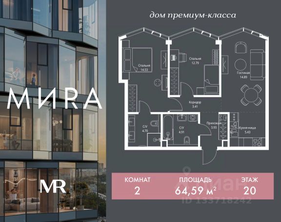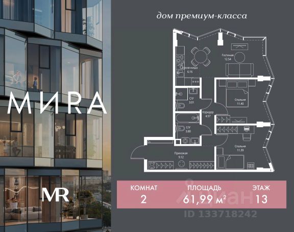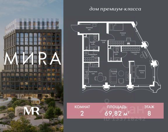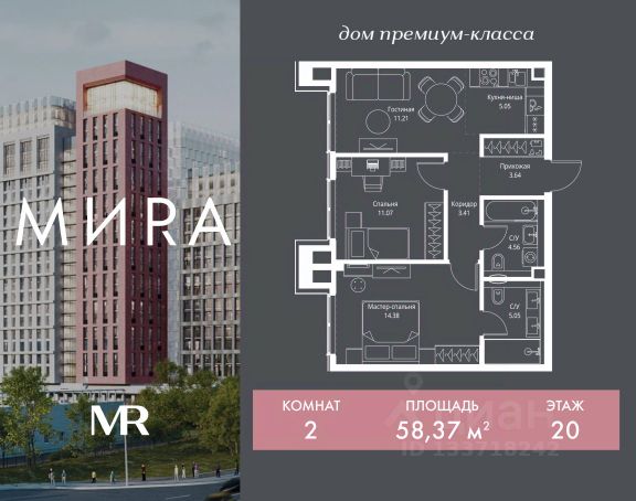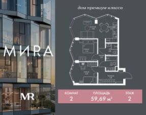 Прямая продажа от застройщика. Продаётся 2-комнатная квартира общей площадью 54.24 м² без отделки в доме премиум-класса МИRА на 5-м этаже 24 этажного дома. Квартира расположена в корпусе 3. Дом премиум-класса МИRA это: • Спокойный район с богатой историей и сложившейся инфраструктурой • Авторская архитектура на стыке классики и современности • Вход в парк прямо из жилого комплекса • Панорамные виды на Яузу, парки, ВДНХ и скульптуру "Рабочий и колхозница" • Удобные сервисы и безопасность для каждого резидента Расположение: Жилой квартал расположен в Алексеевском районе на северо-востоке Москвы, на второй линии домов, таким образом вы сможете дистанцироваться от шума и суеты проспекта Мира, но при этом будете жить недалеко от этой важной городской магистрали. Прямо у дома: • Парк Акведук • Река Яуза • Памятник "Рабочий и колхозница" Пешком: • 16 мин м. ВДНХ На автомобиле: • 12 мин ТТК • 15 мин Садовое кольцо • 12 мин Национальный парк "Лосиный остров" Благоустройство: Концепция благоустройства от бюро "ДРУЖБА" разработана в стиле "Лесная тропа". В уютном дворе расположились словно затерянные в лесу, площадки для отдыха. Они разделяются островками с травами, кустарниками, крупными камнями и деревьями, между которыми проходят узкие песчаные тропинки с деликатной подсветкой по вечерам. Центральной точкой притяжения для жителей станет главная площадь с фонтаном, которая открывается сразу из двух входных групп. Внутренний двор МИRA: • Детская площадка с зонами для игр малышей до трех лет и детей более старшего возраста • Спортивная площадка с профессиональным оборудованием для тренировок • Декоративные перголы • Воздушный арт-объект с подсветкой, похожий на облако • Чайный домик, где в отдельном отапливаемом павильоне можно в любое время года попить кофе с соседями или устроить камерное семейное чаепитие • Зоны для работы и отдыха с гамаком под навесом, скамейками и креслами Инфраструктура и окружение: В Алексеевском районе есть огромные благоустроенные парки, магазины, гимназии с высоким рейтингом и филиалы ВУЗов, частные и государственные детские сады, модные кофейни и фитнес-центры. В квартале МИRА предусмотрены: • 2 ресторана с видом на парк Акведук • 3 кафе • фитнес-студия • подземный паркинг на 330 машино-мест Компания MR предлагает своим клиентам специальные условия приобретения квартир в рамках программ ипотечного кредитования от банков-партнеров. Продается 2-комнатная квартира в новостройке в районе Алексеевский в Москве.