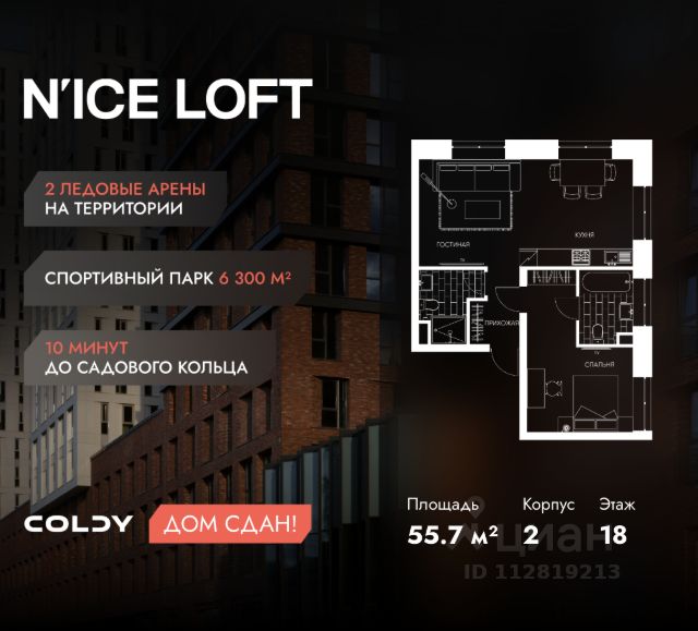 NICE LOFT — готовый жилой квартал с собственным спортивным кластером в 10 минутах от Садового кольца Комплекс апартаментов бизнес-класса NICE LOFT, девелопером которого выступила компания Coldy, представляет собой знаковое жилое пространство, на территории которого органично объединены высококачественная инфраструктура для комфортной жизни и полноценный спортивный кластер. NICE LOFT — новая спортивная доминанта Москвы, где для жителей и их гостей предусмотрено более 20 000 м², созданных специально для тренировок, игр, восстановления и оздоровления. Автором выразительной городской эстетики выступило архитектурное бюро APEX. Строгие силуэты фасадов эффектно возвышаются над благоустроенным окружением, а световые блики элегантно подчеркивают структурное фасадное остекление. Сердце проекта — физкультурно-оздоровительный комплекс с двумя ледовыми аренами формата НХЛ — профессиональными площадками. Помимо спортивных арен на территории NICE LOFT предусмотрено пять многофункциональных залов, где каждый, сможет реализовать свой спортивный потенциал. Для тех, кто предпочитает тренировки и прогулки на свежем воздухе, создан спортивный парк общей площадью 6 300 м² с воркаут-зонами, игровыми площадками и уединенными пространствами для отдыха. Также внутри квартала проложена километровая беговая дорожка, которая доступна к использованию в любое время года. Особое внимание архитекторы уделили входной группе — просторное авторское лобби с потолками до 9 метров с использованием природных элементов. Резиденты и их гости смогут насладиться садом, не покидая пределы дома. Территория апарт-комплекса NICE LOFT соответствует современным стандартам безопасности: инновационная система видеонаблюдения, охраняемый подземный паркинг и круглосуточный консьерж-сервис. Преимущества NICE LOFT: Готовый жилой квартал с собственным спортивным кластером в 10 минутах от Садового кольца Современная архитектура с выразительными контрастными фасадами Спортивная инфраструктура 20 000 м²: 2 ледовые арены формата НХЛ, 5 залов, беговая дорожка 1 км Спортивный парк 6 300 м² с зонами для разных видов активностей Более 10 видов спорта в одном кластере Апартаменты с панорамными окнами и потолками до 5 метров Видовые лоты с террасами и патио Авторское лобби с потолками до 9 метров Консьерж-сервис 24/7 Охраняемый подземный паркинг