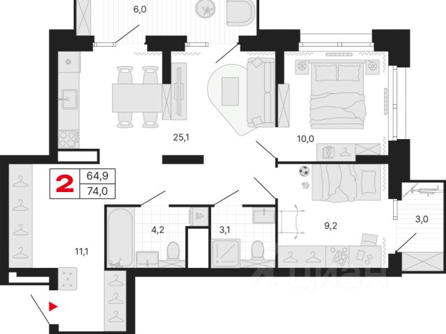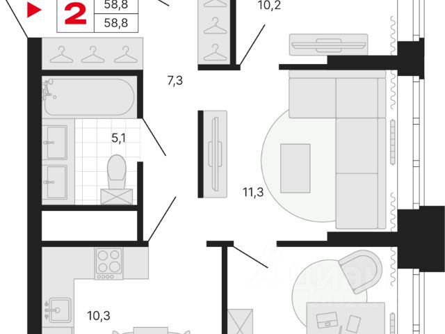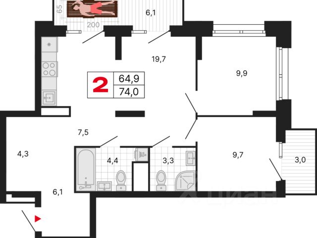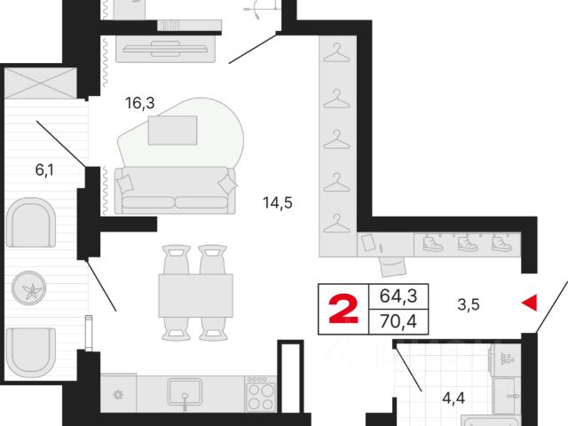 Функциональная планировка .Просторный сан узел ,с возможностью размещению полноценной ванной.