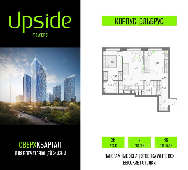 Продаётся 2-комнатная квартира площадью 58.13 кв.м на 3 этаже 46 этажного корпуса Монте Бьянко в квартале небоскребов "Upside Towers". В квартире отделка White-box, c видом на Звездный бульвар, Ольгинский храм, корпус Эверест. Номер квартиры Г0306. Upside Towers - технологичный квартал строится в динамично развивающемся Бутырском районе, в 3 мин. от метро, в 5 мин. от ТТК. На территории 7 га возводится 5 высотных башен от 19 до 58 этажей, названных в честь главных вершин земли. Квартиры с панорамными окнами в пол, высокими потолками и современными инженерными решениями. Благоустроенная зеленая территория включает: приватные дворы, природный комплекс, прогулочный бульвар, ландшафтный парк 2,5 га с сенсорным садом и многофункциональными игровыми и спортивными площадками. В корпусе откроется смотровая площадка для резидентов с панорамными видами на город, парки, Останкинскую башню, ВДНХ, Ботанический сад и Москву-Сити. На первых этажах корпуса Монте Бьянко разместятся: фитнес студия, салон красоты, центр превентивной медицины, образовательные классы, книжный магазин, аптека, фермерская лавка, а также келлеры для хранения сезонных вещей. В приватном закрытом дворе разместятся разнообразные площадки для прогулок, игр и отдыха. Визитной карточкой двора станет уникальная биометрическая игровая пещера со сказочными тоннелями, горками и космическими "мягкими" камнями с неизведанных планет. Планету Земля дети смогут исследовать в павильоне круглый год: объемная крыша укроет от солнца и дождя. Игровая пещера будет реализована в стиле "эмоциональная архитектура". Большое внимание в проекте уделяется созданию социальной инфраструктуры. В стилобатной части, между корпусами "Атлас" и "Олимп" разместится уникальное пространство закрытый клуб для жителей квартала Upside Club площадью 2 000 кв. м. Здесь разместятся: каминный зал с роялем, многофункциональная детская зона c двухуровневым игровым оборудованием для малышей и дошкольников, плей-рум для подростков, домашний кинотеатр, коворкинг, переговорные и лектории. На 47 этаже башни "Атлас" откроется SKY SPA Relax с расслабляющей атмосферой, джакузи, сауной, залами для релаксации и йоги. Собственники квартир смогут в любое удобное для них время забронировать посещение спа-зоны через смарт-приложение. На крыше стилобата разместится всесезонная BBQ патио-зона с верандой и закрытыми помещениями для приготовления и отдыха. Покупая квартиру даже самого минимального размера в Upside Towers, вы получаете в пользование 2 000 м² бесплатных общественных пространств. В рамках проекта строится государственная школа и детский сад, разместится более 15 000 кв.м. коммерческой инфраструктуры. Насыщенная социальная инфраструктура формирует множество сценариев для жизни на территории квартала. В Upside Towers применяются лучшие технологии и практики, чтобы обеспечить высшее качество жизни: Воздух, не уступающий по качеству горному, обеспечит приточно-вытяжная вентиляция. Пятиступенчатая очистка воды с сохранением п Купить 2-комнатную квартиру в новостройке в районе Бутырский в Москве.