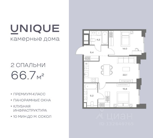 Прямая продажа от застройщика — 2-комнатная квартира общей площадью 61.3 м², без отделки. Квартира 51 расположена на 13-м этаже 22-этажного дома, секция 1. Жилой проект премиум-класса DD:OO:MM Дом на Часовой от девелопера Dar расположен в 12 минутах пешком от метро Аэропорт. Дом находится внутри района и не граничит с шумными магистралями. До Ленинградского проспекта 4 минуты на авто, прямой выезд на ТТК — в 10 минутах. Проект состоит из семи пятиэтажных секций и двух доминант высотой 13 и 22 этажа. Неоклассическая архитектура разработана бюро СПИЧ — одним из крупнейших и наиболее успешных архитектурных бюро в России и за рубежом с реализованными проектами в Германии, Италии и ОАЭ. Высота потолков — от 3,6 метра, в квартирах установлены панорамные окна высотой 2,4 метра. На площадке расположены от 2 до 5 квартир, что обеспечивает высокий уровень приватности. В Доме на Часовой появится подземный паркинг, рассчитанный на 149 мест, ещё 4 машино-места будут размещены на территории. На подземном этаже также появятся 69 кладовых. В гранд-лобби разместится культурное пространство: библиотека с читальным залом, разработанная кураторами книжного магазина "Подписные издания", и музыкальная комната с коллекцией виниловых пластинок и проигрывателями. Здесь же появится детская зона, где родители смогут провести время с детьми за книгой, и коворкинг со стеклянными перегородками для сосредоточенной работы. Идея двора вдохновлена античным идеалом гармонии природы и человека. С-образная форма Дома позволила создать камерный внутренний двор, в котором появятся большая аллея, места спокойного отдыха — уединённые и для компаний, навесы для отдыха и работы раскидистые ивы и низкие кустарники. "Активные" площадки — детская и спортивная — вынесены за периметр дома, но также находятся на огражденной территории. Детская площадка выполнена в монохромных оттенках и подойдёт для разных возрастов. На спортивной площадке появятся тренажёры, брусья и место для йоги.