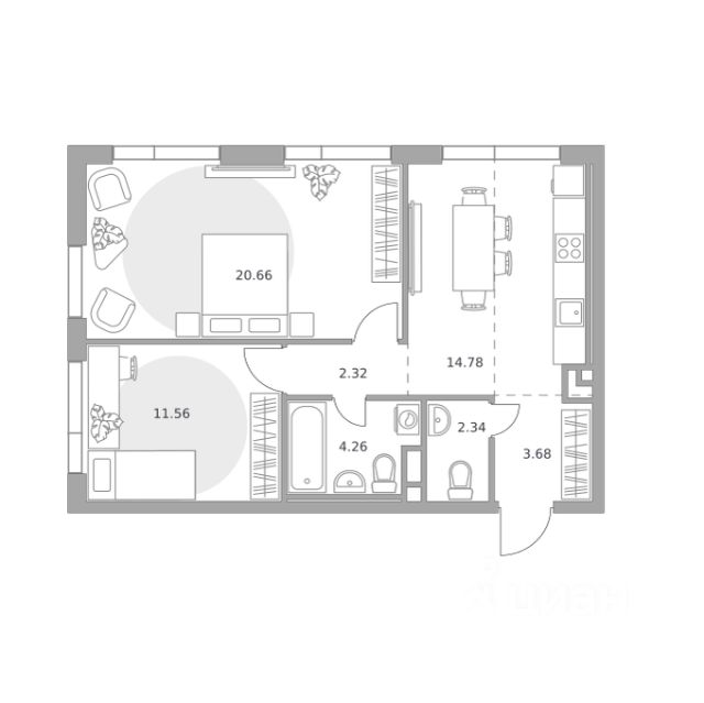 Продаётся 2-комнатная квартира 472, площадью 56,57 м², на 14 этаже в ЖК "MYPRIORITY Нижегородская" корпус 1. Стоимость — от 29803571 руб. Квартира с отделкой, планировка односторонняя, окна на улицу.