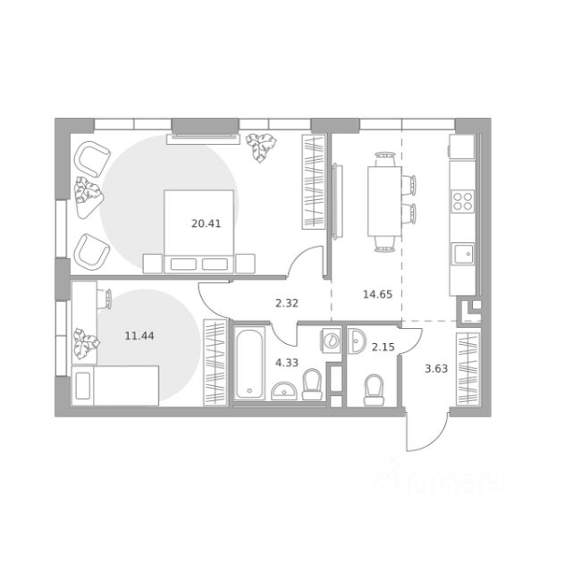 Продаётся 2-комнатная квартира 144, площадью 61,62 м², на 2 этаже в ЖК "MYPRIORITY Нижегородская" корпус 1. Стоимость — от 24748377 руб. Квартира без отделки, планировка односторонняя, окна во двор.