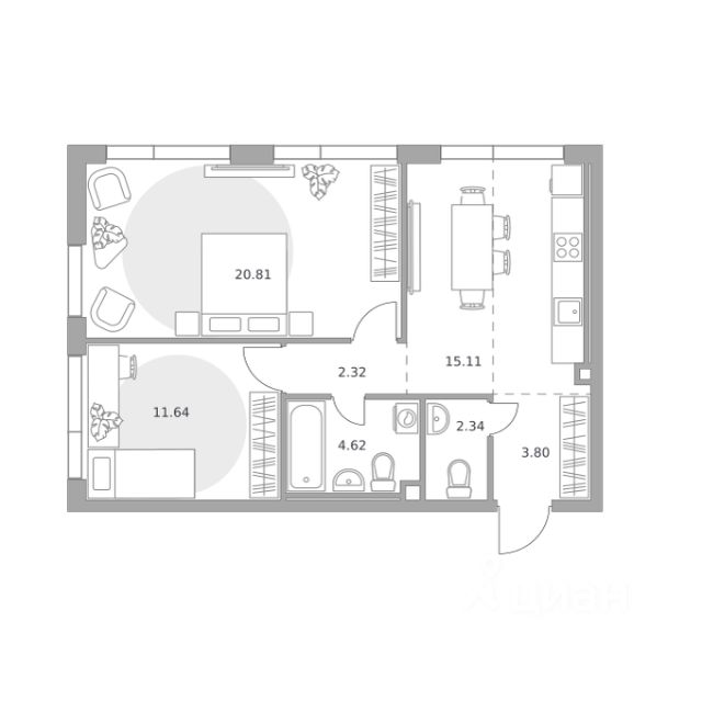 Продаётся 2-комнатная квартира 304, площадью 61,65 м², на 20 этаже в ЖК "MYPRIORITY Нижегородская" корпус 1. Стоимость — от 26071644 руб. Квартира без отделки, планировка односторонняя, окна во двор.
