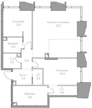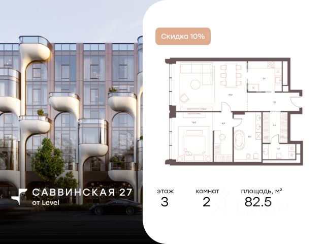 В историческом районе Хамовники продаются 2-к апартаменты площадью 82.50 кв.м, расположенные на 3 этаже делюкс-резиденции Саввинская 27 от Level. Преимущества: - 51 апартамент и 10 пентхаусов площадью 83-346 м2 с возможностью перепланировки и объединения; - все апартаменты с видом на Москву-реку; - бассейн 25 метров, тренажёрный зал, зал для занятий йогой и пилатесом; - бизнес-лаундж с отдельными переговорными; - детская комната с выходом во внутренний двор; - зимний сад; - библиотека с настоящим дровяным камином; - салон красоты и спа премиум-класса Mahash Spa; - подземный паркинг на 91 машино-место; - ресторан с летней террасой; - продуманное благоустройство на закрытой территории с охраной и видеонаблюдением, с детской площадкой и местом для тихого отдыха. Расположение и инфраструктура: Дом построен именно в Хамовниках неслучайно, ведь это стиль жизни, к которому вы привыкли: лучшие школы, спортивные секции, места для отдыха, прогулок и комфортная логистика до исторического центра или Москва-Сити. - 2 минуты до Садового кольца и 6 минут до ТТК на машине; - 11 минут пешком до "Лужники"; - 20 минут пешком до станции метро "Спортивная"; - в окружении более 15 детских садов, в том числе 9 частных; - в пешей доступности расположены 11 школ, 4 из которых входят в топ-20 школ Москвы по версии Forbes; - в окружении 5 парков, в том числе парк "Новодевичьи пруды", усадьба Трубецких, парк Горького. Отличная транспортная доступность: Еще одно преимущество резиденции - удобная транспортная доступность. Несмотря на близость к центру, путь на автомобиле до ТТК займет 2 минуты, до Садового кольца 5 минут. В пешей доступности находятся три станции метро: Спортивная, Фрунзенская и МЦК Лужники. 2-комнатная квартира в новостройке в районе Хамовники в Москве.