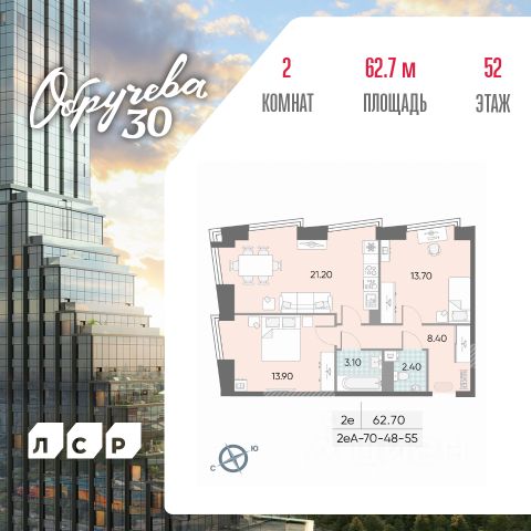 Продается 2-комн. кв-ра площадью 66.00 кв.м на 5 этаже 23 этажного монолитного дома в ЖК "ОБРУЧЕВА 30" от Группа ЛСР. "Обручева 30" - дом бизнес-класса в престижном районе ЮЗАО и шаговой доступности от станции метро "Калужская". Два корпуса неповторимой формы от архитекторного бюро "Камень" с уникальными форматами квартир: от двухуровневых с камином до квартир с террасой. "Клубная" инфраструктура для резидентов: студии йоги и сайкла, тренажерные залы, коворкинг-зона, конференц-залы, кинозал и детские игровые комнаты. Дом бизнес-класса "Обручева 30" возводится в Юго-Западном административном округе в районе Коньково на улице имени В. А. Обручева, видного советского ученого. В пешей доступности от "Обручева 30" находятся две станции метро: "Калужская" Калужско-Рижской линии (5 минут) и "Воронцовская" Большой кольцевой линии (10 минут). Продам 2-комнатную квартиру в новостройке в районе Коньково в Москве.