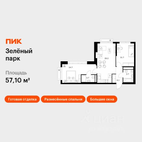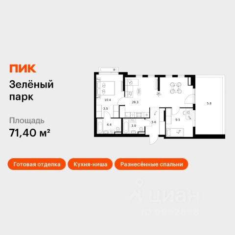 Продаётся 2-комн. квартира площадью 48,3 кв.м на 4 этаже 12 этажного дома (Корпус 5.1, Секция 1) проекта ПИК Зелёный парк. Светлый просторный подъезд на уровне земли, функциональная планировка, большие окна, предчистовая отделка. Большой квартал с оригинальной архитектурой в обжитом районе Зеленограда. От него до станции МЦД-3 "Зеленоград-Крюково" — 20 минут пешком, до Кутузовского шоссе можно доехать на машине за 3 минуты, а до Пятницкого шоссе — за 5 минут. Характер "Зелёного парка" отражён в архитектуре. Квартал состоит из уютных разноэтажных блоков с оригинальными акцентами. Цветовая палитра проекта спокойная и сдержанная: оттенки белого и коричневого сочетаются с пастельным розовым и мятным. В проекте запланированы также два детских сада, две школы и паркинг. На первых этажах откроются магазины, кафе и другие сервисы — чтобы купить кофе и свежий хлеб к завтраку, можно будет просто спуститься на лифте. В уютных дворах-парках появятся места для отдыха, детские площадки, кофейни и зоны отдыха. Рядом — Зеленоградский лес, Парк Победы и Михайловский пруд, где можно гулять и заниматься спортом. У жителей "Зелёного парка" будет возможность получить московскую прописку. Для любителей спорта в 10 минутах пешком от квартала — велодром с трассой, физкультурно-оздоровительный комплекс Горизонт, а также лыжероллерная трасса длиной около 3 км. Артикул 1060927 (Застройщик АО "СПЕЦИАЛИЗИРОВАННЫЙ ЗАСТРОЙЩИК "ЗЕЛЕНОГРАДСКИЙ") Продам 2-комнатную квартиру в новостройке в районе Крюково в Москве.