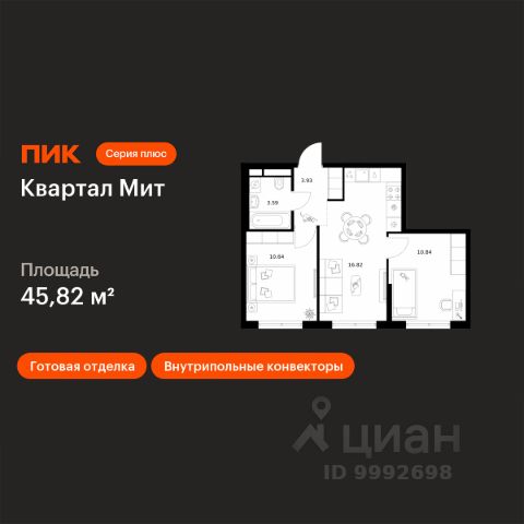 Продаем евротрешку! Общая площадь - 50,6 кв.м. Площадь кухни-гостиной - 17,8 кв.м. Два санузла. 4 этаж. Застройщик ПИК: ЖК "Митинский лес". Полная отделка. Окна во двор. Два взрослых собственника. Дата получения ключей по договору до 15.11.2028 г. Продажа от собственника. Квартира в ипотеке. Никаких других обременений нет. Продаем сами, агентов просьба без покупателей не беспокоить.