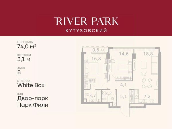 Продается 2-к квартира площадью 61.3 кв.м. на 4-м этаже в жилом комплексе премиум-класса River Park Кутузовский в Башне Diamond Tower О жилом комплексе. Премиальный жилой комплекс River Park Кутузовский строится в одном из самых престижных районов столицы Дорогомилово, на берегу Москвы-реки. Яркий проект в стиле эко-футуризма станет самым масштабным и самым высотным ЖК в локации Кутузовского проспекта. В проекте будет впервые воплощена концепция Family Premium. Расположение и Транспортная доступность: - На берегу Москвы-реки, напротив Москва-Сити - 600 метров до Кутузовского проспекта - Удобный съезд с ТТК - Прямой выезд на МКАД по Северному дублеру Кутузовского проспекта. - В пешей доступности 3 станции метро: Фили, Парк Победы, Кутузовская, а также станция МЦД Фили. Архитектура от именитого бюро ADM отличается уникальной пластикой фасадов - башни словно парят в воздухе, играя гранями как драгоценные камни. Жилой комплекс состоит из 5-ти небоскребов с home park на закрытой территории и внешней торговой галереей с открытым доступом. В закрытом внутреннем дворе уникальная по насыщенности клубная инфраструктура - 5 Towers Club только для жителей: - Многофункциональная спортивная площадка (баскетбол, футбол, воллейбол, большой теннис) - Детский игровой клуб NEMO - Life Rooms с караоке, барной стойкой и meeting room - Music salon - Gedonist Club с бильярдной - Beauty station - Гольф-симулятор Впервые в Москве lounge зоны на крыше небоскребов, только для жителей: - Всесезонные беседки иглу - Джакузи - Барная стойка - Грили - Площадка для занятий йогой - Самые высоки качели на крыше в России - Видовые площадки Благоустройство комплекса занимает 3 гектара и разработано мировым экспертом по городским парковым ландшафтам - голландским бюро WEST8. Концепция проекта дать жителям отдохнуть от городского ритма, расслабиться среди природы и натуральных материалов. В home park будут высажены многолетние деревья по принципу no allergy. - Зеркальный пруд с арт-объектом - Две детские площадки - Work out с навесом - Цветущий сад - Party lounge - Видовая зона отдыха с очагом - Солярий На территории жилого комплекса планируется строительство крупного образовательного центра: детский сад на 200 мест и школа на 460 мест.