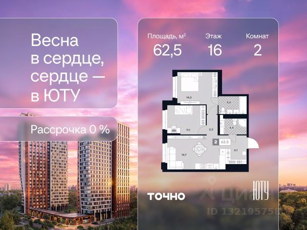Скидка до 18% в апреле на выделенный пул лотов! ЮТУ — камерный проект бизнес-класса с исключительной архитектурой, видовыми квартирами и подходом к большой благоустроенной набережной канала имени Москвы. Проект создает идеальный баланс жизни в городе. Это приватный оазис, где в любой момент можно сменить обстановку и выбрать любой из тысячи маршрутов к активному отдыху и ярким впечатлениям. Удачное месторасположение: • Первая линия в прибрежной части Химкинского водохранилища • Исключительно тихий и зелёный район Южное Тушино • За 2 минуты можно спуститься к воде, за 10 минут найти зеленые парки и готовую инфраструктуру, за 30 минут доехать до Кремля Концепция проекта: • Две футуристичные башни, соединенные торговой галереей от бюро ATRIUM • 60 неповторяющихся планировок: квартиры с угловым панорамным остеклением, мастер-спальнями и гостиными до 39м², а также просторные квартиры площадью до 128,6 м² Чувство эксклюзивности: • Своя приватная жилая экосистема только для резидентов домов • Лаунж-терраса на крыше • В проекте предусмотрен закрытый двор-парк. Прогрессивные технологии: • 3-х уровневая система безопасности (Face ID, BLE-метки, видеонаблюдение) • Умный паркинг с распознаванием номеров Проект федерального девелопера ТОЧНО, который входит в ТОП-5 девелоперов России по объемам строительства.