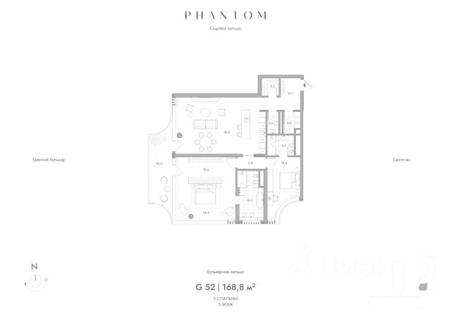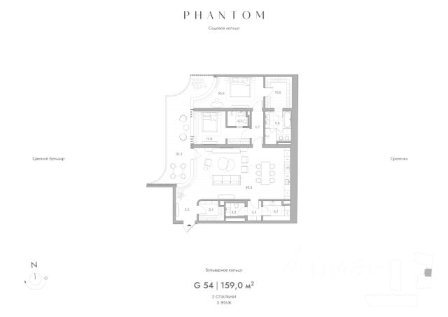 Представляем просторную 2-комнатную квартиру на 5 этаже Резиденций PHANTOM. Общая площадь лота составляет 160,9 кв.м. и включает мастер-спальню с собственной ванной и гардеробом, спальню с собственной ванной, большую кухню-гостиную, прачечную и гостевой санузел. В квартире выполнена финишная отделка с использованием натурального дерева и камня, ванные комнаты и кухни полностью оборудованы современной техникой и мебелью. Среди ее достоинств - окна на две стороны. Досконально выверенное планировочное решение создает функциональное и визуально легкое пространство. Высокие потолки и большие окна наполняют квартиру воздухом и светом. PHANTOM пространство абсолютного физического и эмоционального комфорта. Клубный дом класса deluxe, за футуристичными и плавными фасадами которого скрыт приватный мир, создающий идеальную среду для жизни. Преобладание белого цвета в экстерьере, сплошное остекление, неравномерный ритм террас и обтекаемость контура фасада создают эффект невесомости. Дом словно парит в воздухе. Мягкие природные линии фасада плавно переходят во внутреннее пространство здания. Здесь все сценарии жизни объединяются в высококлассной клубной инфраструктуре: собственный корт для падел-тенниса, терраса на крыше с открытым камином и дизайнерским водопадом, кинозал, сигарная, двухуровневый ивент-холл, библиотека, переговорная, панорамный фитнес зал, игровая и комната красоты. Внутренняя территория полностью закрыта от посторонних. Это природный оазис с водной архитектурой, зонами отдыха, уютными беседками и детской площадкой. Здесь легко отстраниться от городского шума и почувствовать комфорт. Подземный паркинг имеет удобный въезд для спорткаров и автомобилей представительского класса, зарядные станции для электромобилей, автомойку, комнату хранения велосипедов, келлеры и валет сервис. Вы всегда сможете оставить свой автомобиль у входа в лобби и получить его чистым в нужное время. Все машиноместа имеют увеличенную площадь.