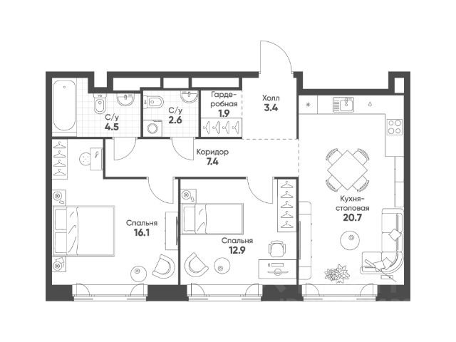 В премиальном жилом квартале PRIDE продается 2-комнатная квартира в 1 корпусе, на 11 этаже, в секции 4. Её общая площадь составляет 47.7 м². Пространство включает 1 уютную спальню 14,6 м², просторную кухню-гостиную 21,7 м² и ванную комнату 5,7 м². Ключи в 2026 году. Удобная локация: Жилой квартал расположен в 15 минутах от Цветного бульвара в историческом районе Марьина Роща. До любой точки города быстро и удобно добраться, как на общественном транспорте, так и на авто — комплекс находится всего в 3 минутах от ТТК и в пешей доступности от метро. Яркая архитектура с переменной высотностью от 7 до 22 этажей от именитого бюро APEX формирует запоминающийся облик проекта. Развитая инфраструктура: Территория квартала делится на несколько отдельных частей: открытый просторный бульвар 3500 м² для прогулок и два внутренних камерных двора. Внутри предусмотрены площадки для спорта, места для игр и тихие пространства для отдыха и неторопливого общения. Коммерческие и торговые помещения спроектированы на уровне первых этажей: супермаркеты, магазины, рестораны и кофейни, барбершоп, спа-салон и другие сервисные точки. Образовательный центр со школой на 257 учеников и детским садом на 112 мест на собственной территории квартал - идеальное решение для семей с детьми. Таким образом, внутренняя инфраструктура PRIDE обеспечит все базовые потребности будущих жителей. Благоустроенная территория: Ландшафтный дизайн с многоуровневым и замысловатым озеленением будет радовать жителей на протяжении всех сезонов — богатая флора дворов включает в себя несколько десятков видов растений. Лобби как в лучших отелях мира: На первых этажах резидентов и гостей встретят лобби с авторским дизайном от Sundukovy Sisters, бюро знаменито своими работами для отелей и ресторанов премиум-класса во всем мире. Надежный застройщик: Девелопер PIONEER — компания с 24-летней историей. В портфеле — 40 проектов жилой, коммерческой, социальной и многофункциональной недвижимости в Москве и Санкт-Петербурге. С 2001 года было реализовано 2,9 млн м². В настоящее время 1,6 млн м² находятся в стадии проектирования и строительства. Среди новых знаковых проектов девелопера — премиальные жилые кварталы и деловые объекты класса A. Продам 2-комнатную квартиру в новостройке в районе Марьина роща в Москве.