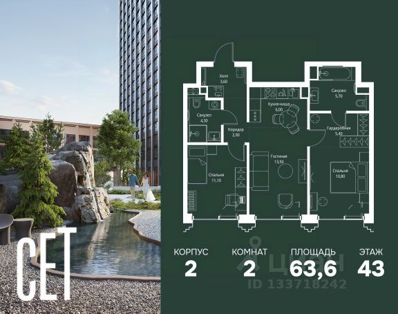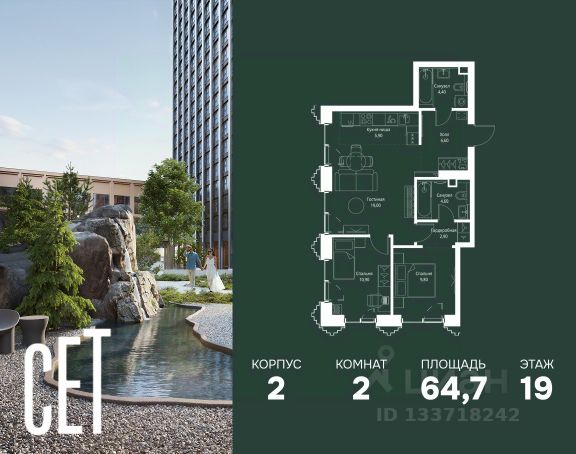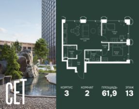 Прямая продажа от застройщика. Продаётся 2-комнатная квартира общей площадью 56.30 м² с предчистовой отделкой в ЖК Веер на 19-м этаже 22 этажного дома. Жилой комплекс бизнес-класса Веер от компании MR — это футуристичный мультиквартал, расположенный в престижной локации на западе Москвы. Благодаря переменной высоте башен — двух 22-этажных, 46-этажной и двух 59-этажных — возникает динамичность в силуэте комплекса, а его яркий образ вносит разноплановость в архитектурный пейзаж района. Расположение и транспортная доступность: • Веер удобно расположен в непосредственной близости от Кутузовского проспекта, обеспечивая быстрый доступ к центральным районам Москвы • Комплекс находится непосредственно напротив самого большого природного заказника в Москве - парка "Долина реки Сетунь", а за семь минут можно доехать до памятника садово-паркового искусства, Троекуровского леса. • Всего в 15 минутах - центр города, самая престижная бизнес-школа управления России "Сколково", дом творчества "Переделкино". Инфраструктура: Разнообразить свой день резиденты Веер смогут также проводя больше времени на свежем воздухе. Двор разделен на 4 зоны разных эмоций и действий, которые пересечены и соединены веерными прогулочными маршрутами: • Спортивная площадка устроена в глубине "Кленовой рощи" • В "Чайном домике" будет создан навес с утеплением для отдыха в любую погоду • Площадки для детей воплотятся в "Волшебный лес" с цветами, зеркалами и световым дизайном • "Центральная площадь" устроена у водного оазиса живописного пруда. Компания MR предлагает своим клиентам специальные условия приобретения квартир в рамках программ ипотечного кредитования от банков-партнеров.