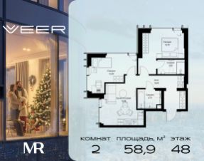 Прямая продажа от застройщика. Продаётся 2-комнатная квартира общей площадью 51.60 м² без отделки в ЖК VEER на 2-м этаже 59 этажного дома. Жилой комплекс бизнес-класса VEER от компании MR — это футуристичный мультиквартал, расположенный в престижной локации на западе Москвы. Благодаря переменной высоте башен — двух 22-этажных, 46-этажной и двух 59-этажных — возникает динамичность в силуэте комплекса, а его яркий образ вносит разноплановость в архитектурный пейзаж района. Расположение и транспортная доступность: • VEER удобно расположен в непосредственной близости от Кутузовского проспекта, обеспечивая быстрый доступ к центральным районам Москвы • Комплекс находится непосредственно напротив самого большого природного заказника в Москве - парка "Долина реки Сетунь", а за семь минут можно доехать до памятника садово-паркового искусства, Троекуровского леса. • Всего в 15 минутах - центр города, самая престижная бизнес-школа управления России "Сколково", дом творчества "Переделкино". • 18 минут пешком до м. "Давыдково" • Открытие новых станций метро в шаговой доступности в будущем Инфраструктура: Разнообразить свой день резиденты VEER смогут также проводя больше времени на свежем воздухе. Двор разделен на 4 зоны разных эмоций и действий, которые пересечены и соединены веерными прогулочными маршрутами: • Спортивная площадка устроена в глубине "Кленовой рощи" • В "Чайном домике" будет создан навес с утеплением для отдыха в любую погоду • Площадки для детей воплотятся в "Волшебный лес" с цветами, зеркалами и световым дизайном • "Центральная площадь" устроена у водного оазиса живописного пруда. Компания MR предлагает своим клиентам специальные условия приобретения квартир в рамках программ ипотечного кредитования от банков-партнеров.