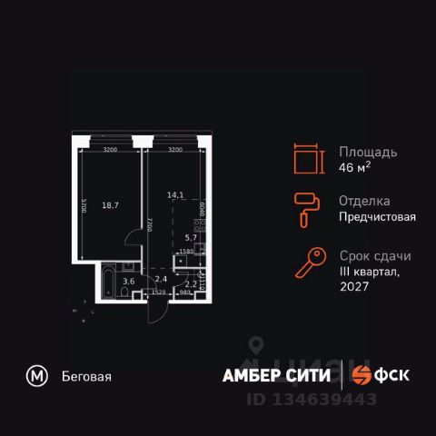 Прямая продажа от застройщика! Успейте забронировать квартиру до повышения стоимости! Жилой Комплекс премиум-класса. Продаётся 2-к квартира номер 654 общей площадью 44.2 кв.м. на 3-м этаже 57 этажного здания. Предчистовая отделка. Цена с учётом скидки. Особенности квартиры: - Организуем показ в удобное для вас время! - Мастер-зона с санузлом и гардеробной. Всё для вашего комфорта и удобства, включая личный санузел и гардероб. - Просторная спальня, в которой можно разместить большую кровать. - Линейная планировка - максимальная функциональность и удобство. - Увеличенная ширина окна/окон - больше света и визуального простора. - Увеличенная высота окна - больше воздуха и света. - Гостевой санузел - комфорт и удобство для ваших гостей. - Ниша под стиральную машину - удобство и экономия пространства. - Евроформат - просторное и удобное жилье с отличной планировкой. - Гибкая планировка - создайте пространство по своему вкусу. - Место для игры/занятия спортом - идеальное пространство для активных детей. - Линейная кухня - функциональность и практичность в одном решении. - Проходная кухня-гостиная - идеальное пространство для общения и готовки. - Гардеробная - удобство для хранения и организации вещей. - Ниша под шкаф - компактное и удобное место для вещей. Квартира с предчистовой отделкой. Вам не придется заниматься черновыми и трудоёмкими работы, а чистовую отделку и дизайн - сделайте на свой вкус. Информация о комплексе: ЖК "Амбер Сити" - вдохновляющий квартал у Москва-Сити с архитектурой мирового уровня. Здесь кипит жизнь 24/7: парки, инфраструктура и виды на центр без городской суеты. Самодостаточная среда для работы, творчества и семьи в духе лучших районов Нью-Йорка и Гонконга. Транспортная доступность: Квартал с исключительной транспортной доступностью: ключевые точки Москвы в 15-20 минутах. Полное погружение в деловую и культурную жизнь столицы с минимальными затратами времени на дорогу. Общественный транспорт: - Метро "Беговая" - 5 минут пешком - Остановка "2-й Хорошёвский проезд" - 3 минуты пешком - Метро "Звенигородская" (строящаяся) - 10 минут пешком На автомобиле: - Москва-Сити - 10 минут - Звенигородское шоссе - 3 минуты - ТТК - 5 минут - Серебряный бор - 8 минут - Садовое кольцо - 12 минут - Кремль - 20 минут - Шереметьево - 40 минут Внутренняя инфраструктура: ЖК "Амбер Сити": многоуровневый ландшафт на 6 гектарах с зелёным бульваром, объединяющим арт-объекты, водные зоны и архитектурные формы. В закрытых дворах на стилобате - детские площадки с сенсорными элементами, зоны отдыха с креслами и настилами для йоги. Навесы с подогревом и зарядками для зимнего сезона. Активности на любой вкус: настольный теннис, петанк, чтение в тишине на оборудованных скамейках. Продуманное пространство для ежедневного отдыха и игр детей и взрослых. Продается 2-комнатная квартира в новостройке рядом с метро Беговая.