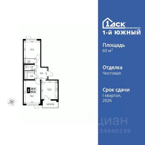 Ваша новая квартира в ЖК "1-й Южный" — городе-саде рядом с природой и городским комфортом! О квартире: • Общая площадь: 59 м², "распашонка" — просторная и уютная, • Большая кухня с лоджией — идеальное место для завтраков и ужинов, с возможностью расширения пространства за счет лоджии, • Раздельный санузел — удобство для всех членов вашей семьи, • Гардеробная — дополнительное место для хранения вещей и порядка в квартире, • Ремонт: White Box + отделка и сантехника в ванной и туалете позволяет сделать дизайн квартиры на свой вкус, избежав самых трудоемких и дорогих работ черновой отделки. Остается только поклеить обои или покрасить стены и выполнить укладку финального напольного покрытия, • Современные технологии для удобства: контроль протечек и управление освещением с помощью мобильного приложения или голосового помощника "Алиса". Возможно подключить совместимые бытовые приборы (чайники, стиральные машины, роботы-пылесосы и т. д.) О комплексе и доме: • Дом сдан, ключи 1 полугодие 2026 г., • Красивые продуманные подъезды расположены на уровне земли, что добавляет удобство для молодых родителей с колясками и жильцам с ограниченными возможностями, • Стойка для организации охраны или консьержа, • Мягкая зона с диванами и креслами вдоль панорамного окна можно работать как в коворкинге, • Колясочные в каждом подъезде - это порядок на этажах и в самих квартирах, • Лапомойки всегда чистые лапки вашего питомца и чистота в вашей квартире, • Двор без машин безопасность для вас, ваших детей и питомцев. • Видеонаблюдение на детских площадках наблюдайте за своими детьми прямо с экранов смартфона Инфраструктура: • Детские сады и школы под окнами: 3 детских сада (330, 500 и 600 мест) и 2 школы (1725 и 1250 мест), • Подземные и наземные паркинги, кладовые помещения, • Оборудованные детские и спортивные площадки, • Собственная поликлиника, • Для прогулок и отдыха - Видновский лесопарк, Герценский парк, Фруктовый сад, Бирюлевский дендрарий, • Супермаркеты: Гипер Лента, Пятерочка Транспортная доступность: • Общественным транспортом: действующая ж/д станция Булатниково (будущая МЦД D5) всего в 10 минутах пешком, на маршрутном такси - до м. Домодедовская и Царицыно — 15 мин, до м. Липецкая (планируемая станция) — 10 мин, до м. Лебедянская (планируемая станция) — 7 мин, • На автомобиле: удобный выезд на трассу М4-Дон в сторону Москвы и области — 850 м, а также МКАД в пределах 1 км. Ипотека возможна. Оформление сделки специалистами вторичного отдела ГК "ФСК".