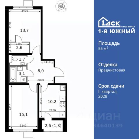 Прямая продажа от застройщика! Жилой Комплекс класса Комфорт Плюс. Продаётся 2-к квартира номер 323 общей площадью 55.7 кв.м. на 10-м этаже 25 этажного здания. Предчистовая отделка. Цена с учётом скидки. Особенности квартиры: - МЦД-5 в пешей доступности - Квартал с южным садом - Свои 3 детских сада и 2 большие школы - Организуем показ в удобное для вас время! - Мастер-зона с гардеробной. Просторное место для отдыха и удобного хранения вещей. - Распашная планировка - отличное сочетание удобства и свободы. - Раздельный санузел - больше удобства для всех членов семьи. - Линейная кухня - функциональность и практичность в одном решении. - Гардеробная - удобство для хранения и организации вещей. - Лоджия - уютное место для отдыха и тишины. Квартира с предчистовой отделкой. Вам не придется заниматься черновыми и трудоёмкими работы, а чистовую отделку и дизайн - сделайте на свой вкус. Информация о комплексе: ЖК от 1-го ДСК: евро формат, большие застеклённые лоджии и умный дом. Управляйте светом и техникой через Яндекс.Станцию, защита от протечек. Удачная локация: транспортная доступность и природа рядом. В каждом дворе - плодовые деревья, весной цветут яблони и груши, зимой - лыжня среди заснеженного леса. Транспортная доступность: - Общественный транспорт: Действующая ж/д станция Булатниково (в перспективе будущая МДЦ D5) в пешей доступности, всего 10-12 минут. - Личный автотранспорт: Удобный выезд на трассу М4-Дон в сторону Москвы и области 850 м, до МКАД - 1 км Внутренняя инфраструктура: "1-й Южный": продуманные подъезды с панорамным остеклением и входами с улицы и двора. Безбарьерная среда для родителей с колясками и маломобильных жителей. В каждом подъезде - колясочные, лапомойки, санузлы, место для консьержа. На территории: 3 детских сада и 2 школы под окнами, пешеходный бульвар-дендрарий для прогулок, центральная площадь для мероприятий. Всё для комфортной жизни, общения и активностей в шаговой доступности. Квартира с предчистовой отделкой - ваш дизайн без черновых работ