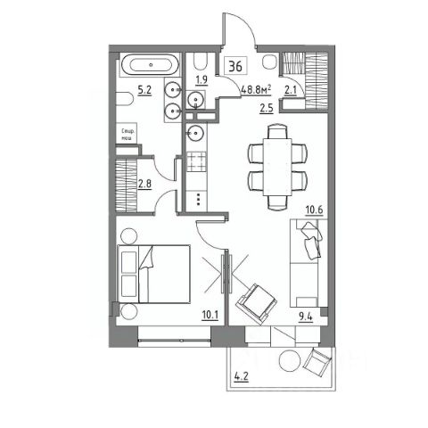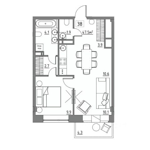 • ✅ Минимальная площадь: 47,6 м²