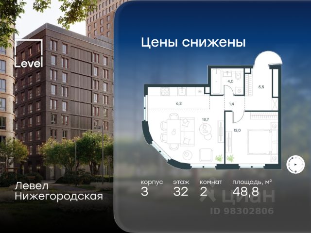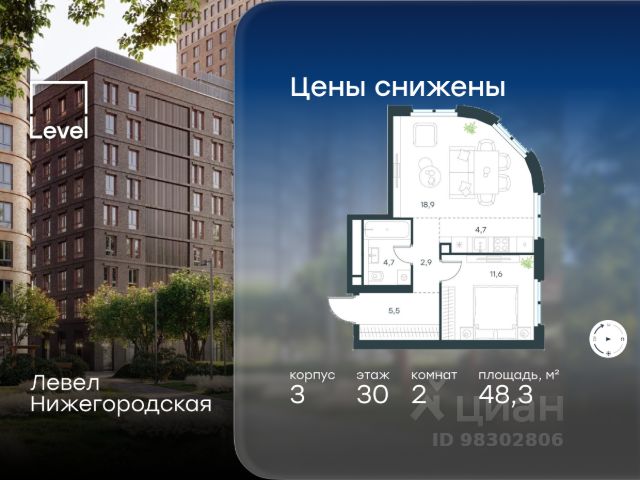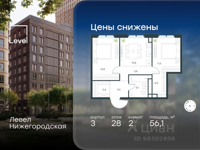 Цена указана с учётом скидки при 100%-й оплате, несубсидированной ипотеке, рассрочке (кроме программы "Рассрочка 0%"). В активно развивающемся районе на юго-востоке столицы продается 2-комнатная квартира площадью 56,2 кв.м без отделки.. Квартира расположена на 45 этаже 45-этажного этажного корпуса 1 в жилом комплексе комфорт-класса Левел Нижегородская (компания Level Group/Левел групп). Отличная транспортная доступность - 10 мин. пешком до станции метро, МЦД-4, БКЛ и МЦК "Нижегородская"; - 13 мин. пешком до станций метро "Андроновка" и "Перово"; - 10 мин. на авто до ТТК; - 14 мин. на авто до Садового кольца. Благоустройство Благоустроенная территория комплекса делится на внешнюю и внутреннюю. Внутренняя часть - это закрытый двор 0,9 га, где обустраиваются детские площадки для разных возрастных групп, беседки для отдыха и работы, несколько спортивных зон, включая зоны для уличных тренировок и лужайку для бадминтона. Здесь же появится ухоженный луг с прогулочными маршрутами. Рядом с жилым комплексом будет создан ландшафтный парк площадью 2,4 га. В парке будут высажены высокие деревья, луговые травы и кустарники, благоустроены лаунж-зоны у пруда, дорожки для бега и прогулок. В центре парка предусмотрена событийная площадь, рядом расположатся дополнительные спортивные и детские площадки, а также зона для выгула домашних питомцев. Внутренняя инфраструктура Дома жилого комплекса будут оснащены коммерческими помещениями, где откроются все необходимые сервисы: магазины, аптеки, салоны красоты, кофейни, службы доставки и многое другое. Комфорт - это когда всё рядом. Кроме того, на территории жилого комплекса Левел Нижегородская предусмотрен подземный отапливаемый паркинг. Этап 1 включает 335 машино-мест и 143 кладовых помещения для хранения сезонных вещей. Технологии и безопасность На территории всех общественных зон постоянно ведется видеонаблюдение и предусмотрен высокоскоростной вайфай. Подъезды, паркинг и внутренний двор оснащены системой контроля доступа. Для удобства жителей создано мобильное приложение, позволяющее связаться с управляющей компанией, осуществлять удаленное управление видеодомофоном или просмотреть изображение отдельных видеокамер по заявке. Для безопасного перемещения по этажам и комфортного спуска в паркинг будут установлены современные лифты от компании BLT Brilliant Elevator. Скорость лифтов - 1,6 - 2,5 м/с. Особенности - Архитектура от экспертов из бюро ARCH(E)TYPE; - Разноуровневая застройка - от секций средней этажности до высоток в 45 этажей (этап 1); - Окна шириной до 2,2 метров (этап1) с видами на Останкинскую башню, Измайловский парк, "Москва-Сити" и Кусковский лесопарк; - Лобби с окнами в пол и потолками от 3,4 метров, оснащенные консьерж-сервисом; - Более 35 видов планировок, включая редкие форматы. Артикул 1-512.