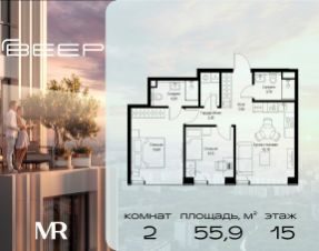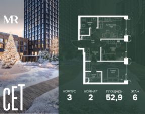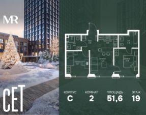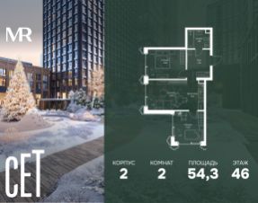 Прямая продажа от застройщика. В ЖК Сет продается 2-комнатная квартира площадью 54.30 м², расположенная в корпусе 2, на 46 этаже 59 этажного дома. Сет имеет стратегически выгодное расположение в ЗАО, в районе с большой историей и блестящим будущим: между природной зоной долины реки Сетунь и Кутузовским проспектом. В рамках возведения первой очереди предусмотрено три корпуса высотой 18, 45 и 59 этажей. На верхних этажах спроектированы общедоступные смотровые площадки с панорамным обзором на центр столицы. Преимущества проекта: • Функциональные планировочные решения • Контроль проникновения через входную дверь • Система управления освещением и температурой в квартире • Система защиты от протечек с функцией перекрытия воды • Вход в подъезд по биометрическим считывателям Face ID • Скоростные лифты • Двухуровневый подземный охраняемый паркинг на 495 машино-мест Застройка Сет включает в себя не только жилые корпуса, но и инфраструктурные объекты. Все необходимое для повседневного комфорта будет расположено в шаговой доступности: • Фитнес-клуб с бассейном • Ведущая городская школа, детский сад и школа искусств • Центр культуры и досуга • Медицинский центр • Кафе и рестораны Расположение комплекса: Пешком: • Метро "Давыдково" - 17 минут • Парк "Долина реки Сетунь" - 3 минуты • Открытие новых станций метро в шаговой доступности в будущем Инфраструктура: Разнообразить свой день резиденты Веер смогут также проводя больше времени на свежем воздухе. Двор разделен на 4 зоны разных эмоций и действий, которые пересечены и соединены веерными прогулочными маршрутами: • Спортивная площадка устроена в глубине ""Кленовой рощи"" • В ""Чайном домике"" будет создан навес с утеплением для отдыха в любую погоду • Площадки для детей воплотятся в ""Волшебный лес"" с цветами, зеркалами и световым дизайном • ""Центральная площадь"" устроена у водного оазиса живописного пруда. На машине: • "Москва-Сити" - 15 минут • Садовое кольцо - 20 минут • ТЦ "Океания" - 8 минут • ТЦ "Времена года" - 13 минут • Сколково - 12 минут • Гребной канал - 17 минут Компания MR предлагает своим клиентам специальные условия приобретения квартир в рамках программ ипотечного кредитования от банков-партнеров.