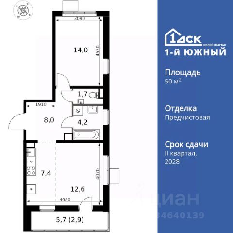 Монолитно-кирпичный дом комфорт-класса. Уютная 2-х комнатная квартира 47,27 (49,89) м2. Особенность квартиры: выход окон на две стороны света Запад и Юг, вид из окна во двор, прихожая 7,4 м2, комнаты 12 и 9 м2, кухня 12 м2, ванная комната 4,2 м2, лоджия 5,23 м2.