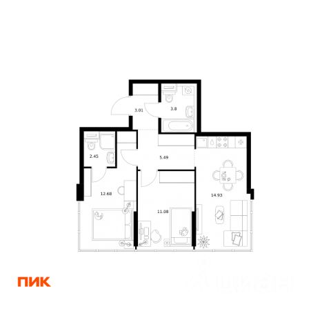 Продаётся 2-комн. квартира площадью 62,03 кв.м на 11 этаже 32 этажного дома (Корпус 1.4, Секция 2) проекта ПИК Бусиновский парк. Светлый просторный подъезд на уровне земли, функциональная планировка, большие окна, c отделкой.