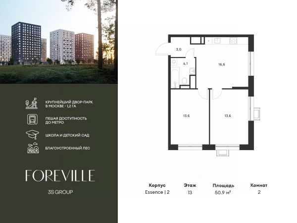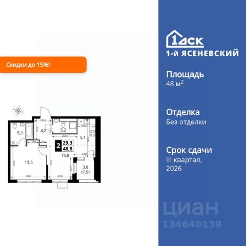 Прямая продажа от застройщика! Жилой Комплекс класса Комфорт Плюс. Продаётся 2-к квартира номер 101 общей площадью 54 кв.м. на 16-м этаже 18 этажного здания. Без отделки. Цена с учётом скидки. Особенности квартиры: - Квартиры рядом с метро - м. Корниловская 9 мин пешком - 63 га лесопарка за окнами - Школа c it-кластером и бассейном. 2 детских сада - Угловая планировка - больше пространства для ваших идей. - Увеличенное количество окон - дополнительное освещение и свежий воздух. - Душ помимо ванной - дополнительное удобство для вашей семьи. - Раздельный санузел - больше удобства для всех членов семьи. - Ниша под шкаф - компактное и удобное место для вещей. - Лоджия - уютное место для отдыха и тишины. Информация о комплексе: В жилом комплексе комфорт-плюс класса "1-го Ясеневского" доступны преимущества двух стилей жизни. Ведь в пешей доступности метро, школа с 25-метровым бассейном и IT-кластером и при этом целых 63 га благоустроенного Троицкого лесопарка под окнами, где так приятно дышать свежим воздухом и слушать пение птиц. Собственная закрытая территория "1-го Ясеневского" представляет собой уютный оазис. Здесь и зеленый освещенный бульвар для прогулок, система велодорожек, маленькая городская площадь, кафе, пекарни и кофе поинты. А еще дворы без машин и многоэтажная парковка. Изюминка территории - фруктовые деревья во дворах и городские сады. "1-й Ясеневский" - всего в 1 км от МКАД, на территории новой Москвы. Жилой комплекс, где есть все необходимое для современного человека. Транспортная доступность: До метро "Корниловская" - 12 минут пешком До метро "Тютчевская" - 25 минут пешком До метро "Теплый стан" - 10 минут на транспорте До метро "Ольховая" - 30 минут на общественном транспорте Личный автотранспорт: Выезд на Калужское шоссе - 500 м МКАД - 1 км Внутренняя инфраструктура: ЖК "1-й Ясеневский" можно назвать идеальным местом для жизни семьи с детьми. Здесь буквально за домом находится Троицкий лесопарк - излюбленное место прогулок молодых родителей. А во внутренних дворах под детские площадки выделены специальные зоны. Они оборудованы всем, что нужно для счастливого детства: современными и максимально безопасными качелями, песочницами и лазалками. Оборудование и игровые сценарии на детских площадках спроектированы вместе с командой детских психологов для правильного развития ребенка и для повышения их интереса. Также рядом с домом два детских садика, один из которых уже построен и школа на 1100 мест. Школу по праву можно назвать образцовым учебным заведением. В ней закладываются основы успешного будущего. Здесь есть класс робототехники, IT-кластер, 25-метровый бассейн и прекрасно оборудованные спортзалы.