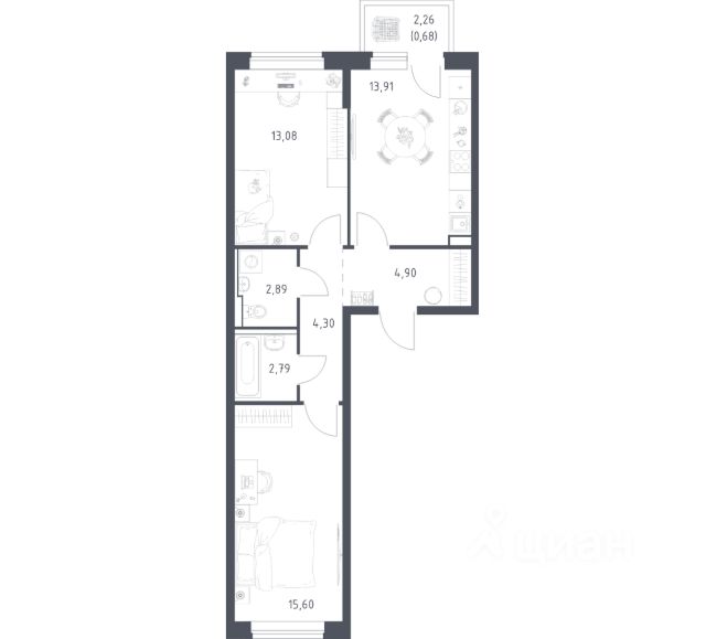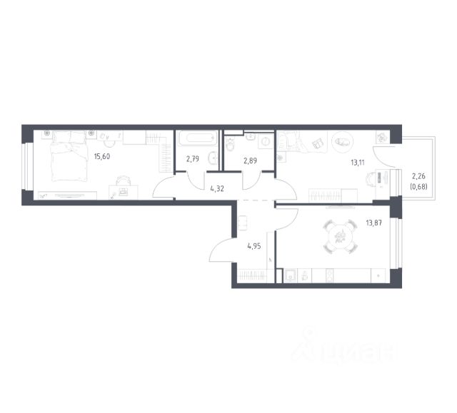 • Возможность выбрать планировку от 39,8 м² м².