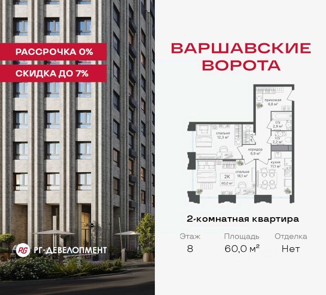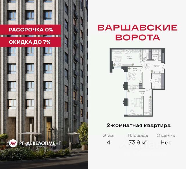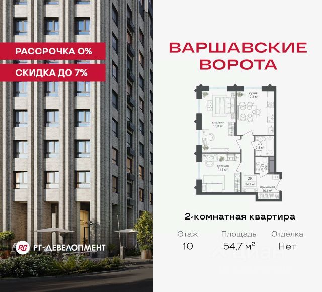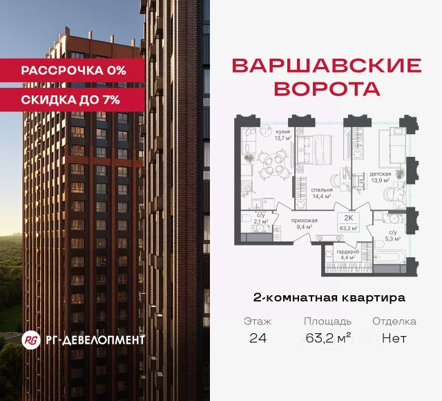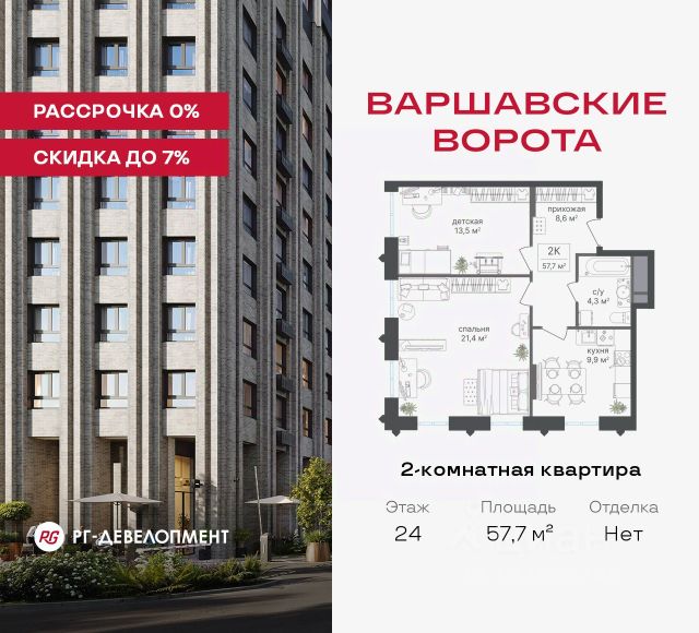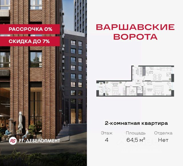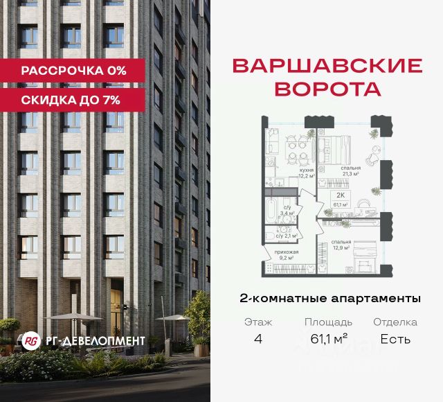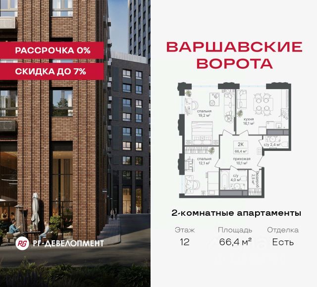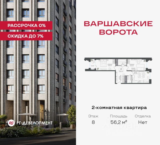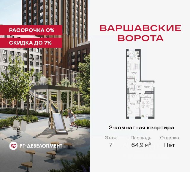 Рассрочка 0% + скидка 5%. Первый платёж 50% при ДДУ, второй 50% — через 12 мес. до ввода ЖК. Продаются 2-комнатные апартаменты 54,3 кв.м. в МФК "Варшавские ворота" на 2-м этаже 9 этажного дома. МФК "Варшавские ворота" — это проект, в котором учтен широкий спектр требований: от транспортной доступности и развитой инфраструктуры до архитектурной выразительности и экологического окружения. Апартаменты в МФК "Варшавские ворота" подойдут для тех, кто ищет продуманное жилье в Москве или готовый инвестиционный актив. Апартаменты здесь — это: - возможность жить комфортно в удобном городском формате — с природой, метро, сервисом и паркингом; - возможность купить лот с готовой отделкой, чтобы вложить минимальные инвестиции в ремонт и получить максимум возможностей от сдачи; - экономия на налоге на имущество, кадастровая стоимость апартаментов ниже ~ на 30% кадастровой стоимости квартиры; - высокая инвестиционная доходность объекта за счет более низкой цены покупки по сравнению с квартирой. Коротко о важном: - 1 минута пешком от м. Аннино; - Удобные выезды на Варшавское шоссе и МКАД; - Вид из окон на Битцевский лес и Аннинский лесопарк; - Высота потолков 2,7 - 3 м; - Закрытый двор-парк; - Школы и детские сады в 10-15 минутах пешком от дома; - Технические лоджии для размещения кондиционеров; - Подземный паркинг; - РГ-Девелопмент — ТОП-20 крупнейших застройщиков России. Проект сочетает в себе современную архитектуру и продуманное благоустройство с уникальным природным окружением. Всего в нескольких минутах от дома — девять парков, каскад прудов и крупнейшие лесопарковые зоны Москвы, создающие ощущение жизни в зеленом оазисе посреди мегаполиса. Архитектурная концепция - стиль Чикаго в Москве. Выполнена в минималистичной эстетике с использованием клинкера и декоративного кирпича. Фасады подчеркивают строгие линии и современный стиль, а входные группы разработаны московским бюро Syntaxis. Лобби оформлены с применением керамогранита, декоративной штукатурки и гипсовых панелей, детали из латуни добавляют изысканности. Пространство оживляют гербарии, композиции из сухоцветов и авторские панно. Проект находится в одной минуте пешком от метро "Аннино", в 12 минутах от станции "Улица Академика Янгеля" и рядом с МЦД-2 "Красный Строитель". Для автомобилистов предусмотрен прямой выезд на Варшавское шоссе и два съезда на МКАД, что позволяет быстро добираться в любую часть города. Среди планировочных решений представлены разнообразные форматы: от функциональных студий до просторных 4-комнатных квартир и апартаментов площадью от 22 до 105 м². Высокие потолки усиливают ощущение простора, а продуманные планировки включают мастер-спальни, гардеробные, угловые окна, объединённые кухни-гостиные и несколько санузлов. Центральное пространство комплекса — закрытый двор без машин. Он разделён на функциональные зоны: детские игровые комплексы, спортивные площадки, воркаут-зоны и уютные места для тихого отдыха. На первых этажах разместя