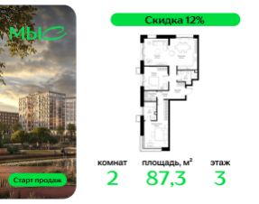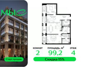 Прямая продажа от застройщика. Продаётся 2-комнатная квартира общей площадью 78.86 м² без отделки в премиальном жилом комплексе "МЫС" на 2-м этаже 12 этажного дома. Квартира расположена в корпусе "Волга". Проект МЫС — это, прежде всего, идеальное место для семей. В рамках проекта построят государственную школу, два детских сада и дворец спорта площадью 20 000 м2 с термальным комплексом, выплывным бассейном, фитнес-залом, теннисными, сквош и падел кортами и секциями для детей. На территории площадью, сравнимой с тремя парками Зарядье, появятся кафе и рестораны, пруд с набережной, спортивные и детские площадки, скейт-парк, лыжные и веломаршруты. Расположение: - 2 минуты до скоростной трассы М1 и Минского шоссе; - 10 минут до МКАД; - 15 минут до МЦД Лесной Городок - 20 минут до делового центра "Москва-Сити"; - 28 минут до аэропорта "Внуково". Благоустройство: - велосипедные и лыжные маршруты; - собственная набережная и парк; - лаунж-зоны в окружении природы; - беседки у очага; - дворец спорта площадью 20 000 м²; - термальный комплекс с тремя бассейнами; - 4 теннисных и падел-корта; - 6 сквош-кортов; - многофункциональный спортзал; - скейт-парк; - просторная площадь для прогулок с фонтаном; - детский Клуб с творческими секциями; - гастро-доминанта; - кафе у пруда, рестораны, ритейл. Окружение - соседство с лесным фондом; - школа на 1250 мест и 2 детских сада на 350 и 255 мест; - Дубковский и Подушкинский леса, парк "Рассказовка", Мещерский парк. Действуют специальные условия при 100% оплате, подробности уточняйте у менеджера в офисе продаж.