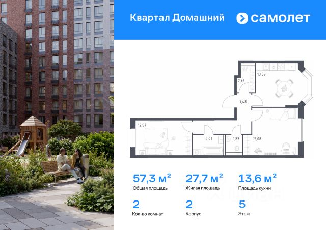 Строим кварталы для жизни с заботой о будущем. Предлагается 2-комнатная квартира комфорт-класса 59,76 кв.м в корпусе 2 на 2 этаже, в ЖК "Квартал Домашний" Квартира без отделки. Доступность опции "отделка" и возможность комплектации мебелью и декором уточняйте у застройщика. Приобрести квартиру возможно по специальным акциям от застройщика, с текущими условиями акций можно ознакомиться в блоке "Акций". Цена динамическая и может отличаться, уточняйте актуальность у застройщика. "Квартал Домашний" находится в Марьино — всего 7 минут пешком до МЦД-2 "Курьяново". Рядом с домом — набережная Москвы-реки. Внутренняя инфраструктура проекта продумана до мелочей: от супермаркетов до кафе и салонов красоты. В "Квартале Домашнем" можно выбирать свою высоту — в комплексе есть корпуса от 7 до 19 этажей. Среди планировочных решений — просторные кухни-гостиные, гардеробные, постирочные, лоджии и угловые окна. "Квартал Домашний" — это: 1. До станции МЦД-2 "Курьяново" — 7 минут пешком 2. До парка 850-летия Москвы — 5 минут пешком 3. До парка "Борисовские пруды" — 15 минут на машине 4. До музея-заповедника "Царицыно" — 20 минут на авто 5. Музей-заповедник "Коломенское" — для фотосессий и прогулок 6. Европейская архитектура с фасадами природных оттенков: песочного, серого, зеленого, терракотового 7. Школа со стадионом, 2 детских сада — на территории квартала 8. Магазины, кафе и салоны красоты на первых этажах домов 9. Приватные дворы без машин 10. Подземный паркинг с местами для электрокаров и индивидуальные кладовые 11. Спортивные и игровые площадки