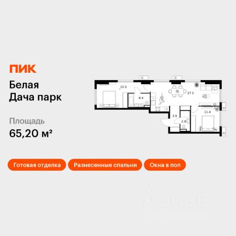 Продаётся 2-комн. квартира площадью 58,5 кв.м на 2 этаже 15 этажного дома (Корпус 19.1, Секция 3) проекта ПИК Белая Дача парк. Светлый просторный подъезд на уровне земли, функциональная планировка, большие окна, c отделкой. "Белая Дача парк" — новый проект в Московской области, в городе Котельники. Квартал расположен в 2 километрах от МКАД и в 7 минутах на автомобиле от метро "Котельники". Уже сейчас вы можете приобрести квартиры с отделкой в готовых и строящихся корпусах. На территории квартала будут построены 22 дома, две школы, поликлиники и пять детских садов. Один из центральных элементов проекта — широкий пешеходный бульвар, где мы создали пространства для спорта, прогулок и отдыха. Яркой точкой притяжения стал PlayHub "Ферма" — масштабная игровая зона с домом-мельницей, искусственным ручьём и развивающими элементами для детей. В 2024 году PlayHub стал победителем "Всероссийской премии лучших проектов создания игровой среды" и получил награду "Лучшая реализация игровой площадки среди девелоперских проектов". Рядом с кварталом много магазинов и развлекательных центров: "Outlet Village Белая дача", "МЕГА Белая дача", гипермаркет "Глобус", центр оптовой торговли Selgros. До Люберецких карьеров можно добраться на машине за 9 минут, а до парка "Кузьминки" — за полчаса. Артикул 566733 (Застройщик АО "СЗ "Новый Горизонт") Купить 2-комнатную квартиру в новостройке рядом с метро Лермонтовский проспект.