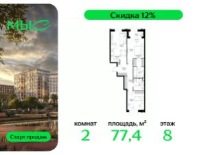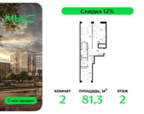 Прямая продажа от застройщика. Продаётся 2-комнатная квартира общей площадью 83.92 м² без отделки в премиальном жилом комплексе "МЫС" на 8-м этаже 12 этажного дома. Квартира расположена в корпусе "Урал". Проект МЫС — это, прежде всего, идеальное место для семей. В рамках проекта построят государственную школу, два детских сада и дворец спорта площадью 20 000 м2 с термальным комплексом, выплывным бассейном, фитнес-залом, теннисными, сквош и падел кортами и секциями для детей. На территории площадью, сравнимой с тремя парками Зарядье, появятся кафе и рестораны, пруд с набережной, спортивные и детские площадки, скейт-парк, лыжные и веломаршруты. Расположение: - 2 минуты до скоростной трассы М1 и Минского шоссе; - 10 минут до МКАД; - 15 минут до МЦД Лесной Городок - 20 минут до делового центра "Москва-Сити"; - 28 минут до аэропорта "Внуково". Благоустройство: - велосипедные и лыжные маршруты; - собственная набережная и парк; - лаунж-зоны в окружении природы; - беседки у очага; - дворец спорта площадью 20 000 м²; - термальный комплекс с тремя бассейнами; - 4 теннисных и падел-корта; - 6 сквош-кортов; - многофункциональный спортзал; - скейт-парк; - просторная площадь для прогулок с фонтаном; - детский Клуб с творческими секциями; - гастро-доминанта; - кафе у пруда, рестораны, ритейл. Окружение - соседство с лесным фондом; - школа на 1250 мест и 2 детских сада на 350 и 255 мест; - Дубковский и Подушкинский леса, парк "Рассказовка", Мещерский парк. Действуют специальные условия при 100% оплате, подробности уточняйте у менеджера в офисе продаж.