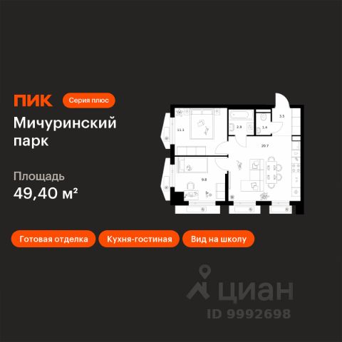 Продаётся 2-комн. квартира площадью 49,3 кв.м на 2 этаже 23 этажного дома (Корпус 4.4, Секция 1) проекта ПИК Мичуринский парк. Светлый просторный подъезд на уровне земли, функциональная планировка, большие окна, c отделкой. "Мичуринский парк" расположен на западе Москвы, в районе Очаково-Матвеевское, в 7 минутах пешком от метро "Озёрная". У подъездов будет два выхода: на улицу и во двор-парк. В наших дворах мы установим столы и лавочки со встроенными зарядными устройствами. Не нужно будет возвращаться домой, чтобы зарядить смартфон или ноутбук: можно весь день работать на свежем воздухе. В лобби "Мичуринского парка" будет удобная зона ожидания, где можно встретить друзей, курьера или дождаться такси, а также гостевая туалетная комната со столиком для пеленания. На территории проекта предусмотрен подземный паркинг и кладовые с надежной системой вентиляции, пожаротушения и системой круглосуточного видеонаблюдения. Собственная инфраструктура проекта включает два детских сада и две школы. Вдоль всего "Мичуринского парка" будут проходить несколько пешеходных бульваров с местами для отдыха. Рядом с проектом несколько зелёных зон, которые прекрасно подойдут для отдыха и спорта на свежем воздухе. Жители "Мичуринского парка" смогут выбирать, куда отправиться на прогулку: в пешей доступности Очаковский парк, парк Школьников и парк Олимпийской деревни, а на автомобиле можно быстро добраться до Тропарёвского лесопарка и Мещерского парка. Вблизи "Мичуринского парка" расположены ведущие вузы: МИРЭА, МГИМО, РАНХиГС, Институт радиотехники и телекоммуникационных систем и Академия ФСБ. Артикул 955997 (Застройщик ООО "СПЕЦИАЛИЗИРОВАННЫЙ ЗАСТРОЙЩИК "ОЗЁРНАЯ 44")