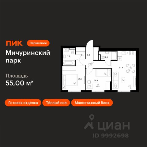Продаётся 2-комн. квартира площадью 51,6 кв.м на 2 этаже 32 этажного дома (Корпус 4.5, Секция 2) проекта ПИК Мичуринский парк. Светлый просторный подъезд на уровне земли, функциональная планировка, большие окна, c отделкой. "Мичуринский парк" расположен на западе Москвы, в районе Очаково-Матвеевское, в 7 минутах пешком от метро "Озёрная". У подъездов будет два выхода: на улицу и во двор-парк. В наших дворах мы установим столы и лавочки со встроенными зарядными устройствами. Не нужно будет возвращаться домой, чтобы зарядить смартфон или ноутбук: можно весь день работать на свежем воздухе. В лобби "Мичуринского парка" будет удобная зона ожидания, где можно встретить друзей, курьера или дождаться такси, а также гостевая туалетная комната со столиком для пеленания. На территории проекта предусмотрен подземный паркинг и кладовые с надежной системой вентиляции, пожаротушения и системой круглосуточного видеонаблюдения. Собственная инфраструктура проекта включает два детских сада и две школы. Вдоль всего "Мичуринского парка" будут проходить несколько пешеходных бульваров с местами для отдыха. Рядом с проектом несколько зелёных зон, которые прекрасно подойдут для отдыха и спорта на свежем воздухе. Жители "Мичуринского парка" смогут выбирать, куда отправиться на прогулку: в пешей доступности Очаковский парк, парк Школьников и парк Олимпийской деревни, а на автомобиле можно быстро добраться до Тропарёвского лесопарка и Мещерского парка. Вблизи "Мичуринского парка" расположены ведущие вузы: МИРЭА, МГИМО, РАНХиГС, Институт радиотехники и телекоммуникационных систем и Академия ФСБ. Артикул 956236 (Застройщик ООО "СПЕЦИАЛИЗИРОВАННЫЙ ЗАСТРОЙЩИК "ОЗЁРНАЯ 44")
