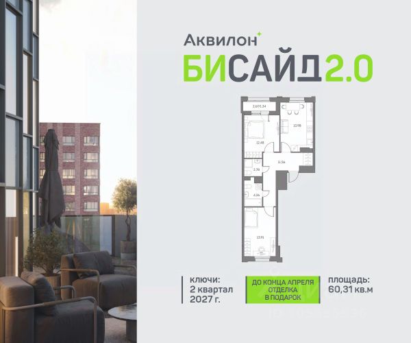 Продажа от застройщика. Продается 2-комнатная квартира на 17 этаже современного жилого комплекса Бисайд 2.0. Вид из окон: на улицу. Срок сдачи: 2 кв. 2027 г. Квартира с лоджией. Отделка WhiteBox: - Вам не придется заниматься черновыми работами. - Возможность реализовать любой дизайн-проект. Расположение: В Бисайд 2.0 все необходимое - в шаговой доступности, не нужно тратить много времени на дорогу до работы, школы и поликлиники, походы в магазины и кинотеатры. Квартал расположен на пересечении ключевых транспортных магистралей Москвы, что позволяет быстро и легко добраться до любой нужной локации. Выбирайте наиболее подходящее занятие или попробуйте все! - Спортивные центры - Ретейл на первых этажах - Событийная площадь с амфитеатром - Дворовые площадки для активностей Транспортная доступность: - 5 минут на машине до ТТК - 7 минут на машине до Садового кольца - 7 минут пешком до станции "Нижегородская Внутренняя инфраструктура Бисайд 2.0: - Своя школа на 825 учеников - Просторное и светлое гранд-лобби - Коворкинг на открытом воздухе - Детский клуб Akvilon Kids - Подземный паркинг - Колясочные и велосипедные - Сити-боксы для хранения - Профессиональная управляющая компания Преимущества: - Технология энергоэффективности Termo-S, снижающая теплопотерю домов и позволяющую экономить на электроснабжении - Soundstop - технология дополнительной шумоизоляции на 39 дБ в квартирах с WhiteBox и чистовой отделкой - Система умного дома inHome 3.0 позволит контролировать коммунальные расходы, оплачивать счета и пользоваться услугами, не выходя из умного дома - Vent-In - система циркуляции воздуха в каждой комнате