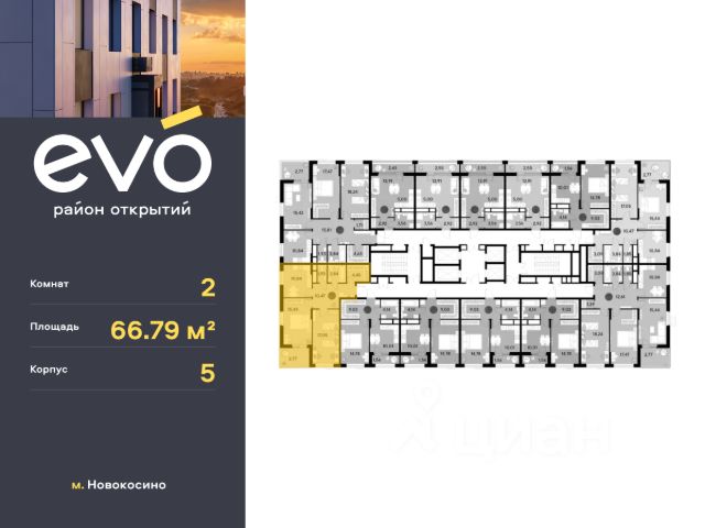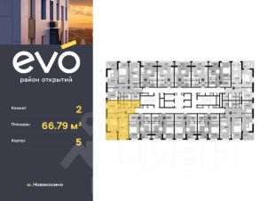 Продается двухкомнатная квартира 66.79 кв.м. в жилом комплексе EVO на 24 этаже по адресу: Московская область, г. Реутов, ул. Комсомольская. Скидка 10% при полной оплате!* EVO - проект комфорт-класса от девелопера Dogma. Каждый житель сможет открыть для себя максимум возможностей. Совершенствоваться во всех направлениях: физическом, эмоциональном и материальном. В EVO можно открыть для себя новые виды спорта, найти единомышленников по хобби, партнеров по бизнесу, развивать в детях новые грани, наслаждаться природой и лаконичной архитектурой. Более 6 га благоустройства в первой очереди! - Зеленый двор без машин, кленовая аллея для прогулок. - Нейродинамические площадки для детей разных возрастов. - Workout зона, столы для пинг-понга, места для занятия йогой. велодорожки и дорожки для скандинавской ходьбы. - Детский сад на 180 мест и школа на 750 мест. - Кроссбукинг. - Лобби с зоной ожидания, колясочной и лапомойкой. - Магазины и кафе на первых этажах. БЕЗОПАСНОСТЬ - Закрытая территория. - Круглосуточное видеонаблюдение. - Контроль доступа. РАСПОЛОЖЕНИЕ Пешком - 7 минут до станции Реутов. - 20 минут до метро Новокосино. На машине - 4 минуты до МКАД. - 6 минут до шоссе Энтузиастов. - 9 минут до Носовихинское шоссе. - 13 минут до МСД (Московский скоростной диаметр). СОЦИАЛЬНАЯ ИНФРАСТРУКТУРА В первой очереди предусмотрено строительство детского сада на 180 мест и школы на 750 учащихся. В 10 минутах ходьбы от EVO находится детский технопарк "Изобретариум", в котором более 60 научных секции: от IT до промышленного дизайна. Для творческих ребят рядом есть художественная и музыкальные школы, хоровая студия. ОКРУЖЕНИЕ - Реутовский центральный парк, Александровский сквер, Фабричный пруд. - ТЦ "Экватор", ТК "Шоколад". - Спортивный комплекс "Старт", Ледовый комплекс "Реутов Арена". - Музей-усадьба "Кусково". *Подробности уточняйте по телефону. Купить 2-комнатную квартиру в новостройке рядом с метро Новогиреево.