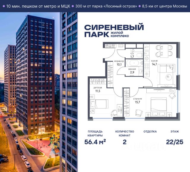 Продаётся просторная 2-комнатная квартира общей площадью 52.4 м² на 13 этаже в новом жилом комплексе "Сиреневый парк", расположенном в Восточном административном округе Москвы на улице Тагильская. Всего 10 минут ходьбы от станции метро "Бульвар Рокоссовского" и одноимённой платформы МЦК. Высококачественное монолитное строительство гарантирует сохранение тепла в доме, а наличие квартир с предчистовой и чистовой отделкой позволяет вам сэкономить время и сразу же переехать в свое жилье после покупки. Благодаря разнообразию планировок вы сможете выбрать идеальный вариант, соответствующий вашим предпочтениям и образу жизни. Предлагаются квартиры: - с просторными кухнями-гостиными, - с нишами для хранения вещей и отдельными гардеробными, - мастер-спальни с собственными санузлами, - большие комнаты с высокими потолками (2,9 м) и с увеличенными безопасными окнами (1,95 м) , которые наполнят ваш дом естественным светом; - с чистовой отделкой по двум дизайн-проектам на выбор; - с остекленными лоджиями и панорамными видами на лес. Каждая деталь в этом доме создана для вашего комфорта: - безбарьерная среда, - бесшумные скоростные лифты, - машиноместа в отапливаемом подземном паркинге и кладовые на -1 этаже с доступом из лифта, - развитая инфраструктура с супермаркетами, кафе, фитнес-клубами, салонами красоты и частным детским садом обеспечивает максимальное удобство жителям. В 300 метрах от ЖК расположен Национальный парк "Лосиный остров". Способы покупки: 100%, Trade-in, Семейная ипотека без наценки, стандартная ипотека. Запишитесь на просмотр в офис продаж и получите свою персональную скидку по акции Назови свою скидку. ЖК "Сиреневый парк" — гармония в деталях, совершенство в каждом моменте. Застройщик проекта - AFI Development. 2-комнатная квартира в новостройке рядом с метро Партизанская.