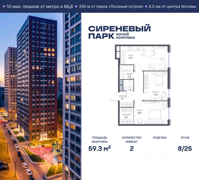 Продаётся просторная 2-комнатная квартира общей площадью 40 м² на 10 этаже в новом жилом комплексе "Сиреневый парк", расположенном в Восточном административном округе Москвы на улице Тагильская. Всего 10 минут ходьбы от станции метро "Бульвар Рокоссовского" и одноимённой платформы МЦК. Высококачественное монолитное строительство гарантирует сохранение тепла в доме, а наличие квартир с предчистовой и чистовой отделкой позволяет вам сэкономить время и сразу же переехать в свое жилье после покупки. Благодаря разнообразию планировок вы сможете выбрать идеальный вариант, соответствующий вашим предпочтениям и образу жизни. Предлагаются квартиры: - с просторными кухнями-гостиными, - с нишами для хранения вещей и отдельными гардеробными, - мастер-спальни с собственными санузлами, - большие комнаты с высокими потолками (2,9 м) и с увеличенными безопасными окнами (1,95 м) , которые наполнят ваш дом естественным светом; - с чистовой отделкой по двум дизайн-проектам на выбор; - с остекленными лоджиями и панорамными видами на лес. Каждая деталь в этом доме создана для вашего комфорта: - безбарьерная среда, - бесшумные скоростные лифты, - машиноместа в отапливаемом подземном паркинге и кладовые на -1 этаже с доступом из лифта, - развитая инфраструктура с супермаркетами, кафе, фитнес-клубами, салонами красоты и частным детским садом обеспечивает максимальное удобство жителям. В 300 метрах от ЖК расположен Национальный парк "Лосиный остров". Способы покупки: 100%, Trade-in, Семейная ипотека без наценки, стандартная ипотека. Запишитесь на просмотр в офис продаж и получите свою персональную скидку по акции Назови свою скидку. ЖК "Сиреневый парк" — гармония в деталях, совершенство в каждом моменте. Застройщик проекта - AFI Development. 2-комнатная квартира в новостройке рядом с метро Партизанская.