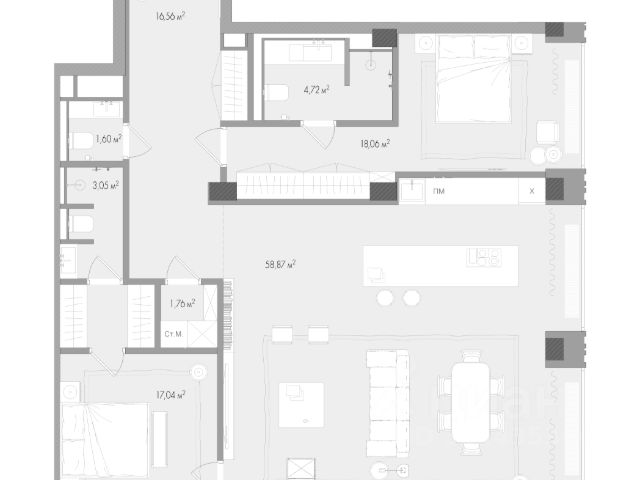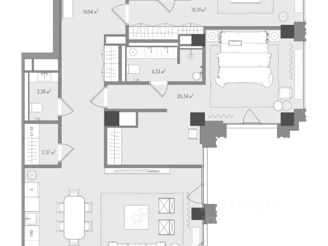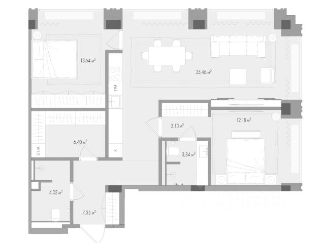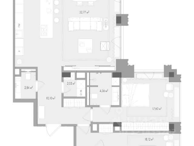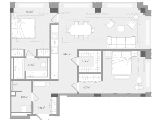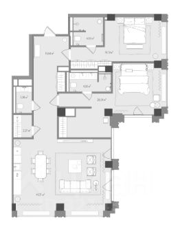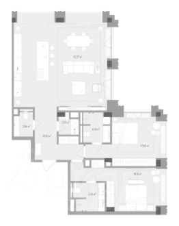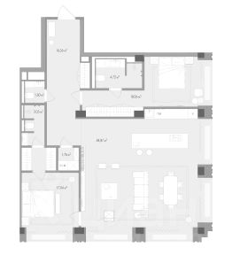 Лот с 2 спальнями и премиальной финишной отделкой располагается на 8 этаже Клубного дома TURGENEV. Вдоль кухни-столовой-гостиной (40,80 м2) располагается галерея (3,52 м2) с видом на тихий Селиверстов переулок и окрестности. Панорамные окна двух спален (13,56 м2, 13,97 м2) выходят на уютный внутренний двор с фонтанами. При мастер-спальне предусмотрена просторная гардеробная (9,10 м2) и ванная комната с двумя раковинами, ванной, душем и туалетом (10,76 м2). В квартире также есть санузел с душем (3,69 м2) и гостевой санузел. Дом сдан.