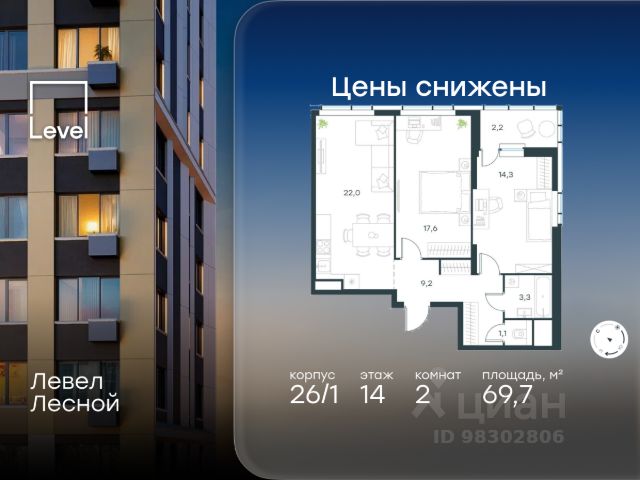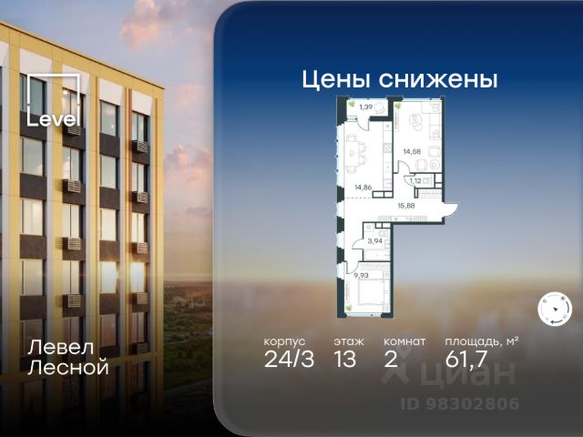 Цена указана с учётом скидки при 100%-й оплате, несубсидированной ипотеке, рассрочке (кроме программы "Рассрочка 0%"). В районе, утопающем в густой зелени лесов, многочисленных парков и скверов, продаётся 2-комнатная квартира площадью 62.30 кв.м с предчистовой отделкой. Квартира расположена на 2 этаже в жилом комплексе комфорт-класса Левел Лесной (компания Level Group/Левел групп). Отличная транспортная доступность: - 25 мин. пешком до станции метро "Пятницкое шоссе"; - 28 мин. на автобусе до станции метро и МЦД-2 "Волоколамская"; - 11 мин. на авто до МКАД; - 25 мин. на авто до ТТК. Продуманный архитектурный проект: - Концепция проекта Левел Лесной от бюро СПИЧ; - Высотность комплекса до 15 этажей с уникальными видами на лесные массивы и город; - Высота потолков до 3 м; - Современные окна высотой до 1,6 м, в части квартир предусмотрены окна в пол. Высота подоконников 0,6 м; Расположение: Жилой комплекс Левел Лесной строится в зелёной зоне ближайшего Подмосковья, г.о. Красногорск в посёлке Отрадное. Шаговая и автомобильная доступность до метро и больших транспортных артерий города. За 25 минут вы дойдёте до станции метро "Пятницкое шоссе", а за 20 минут на машине сможете доехать до станции метро "Тушинская". Район окружен роскошной зеленью лесов и парковых зон, занимающих территорию свыше 1 000 гектаров. Помимо благоприятной экологии, здесь множество возможностей для активного отдыха и поддержания физической формы. Облагороженная территории с полностью развитой инфраструктурой. На территории проекта находится детский сад и школа "Светлые Горы", которая входит в список лучших частных школ от Forbes Education (по данным на 2023г.). Кроме того, в пешей доступности расположено ещё 8 детских садов, а также запланировано открытие современной муниципальной школы. В непосредственной близости находятся сетевые супермаркеты и локальные магазины, аптеки, клиники, почта, библиотека, салоны красоты, рестораны, спортивные и творческие секции, развивающие детские центры. В 12 минутах пешком расположен торговый парк "Отрада" с продуктовым и строительным гипермаркетами, магазинами, кинотеатром и развлечениями для детей. Внутренняя инфраструктура: Мы знаем, как важно, чтобы магазины и сервисы были всегда рядом. В сданных корпусах жилого комплекса Левел Лесной уже расположена полностью готовая развитая инфраструктура. На первых этажах корпуса 27 предусмотрено ещё 14 коммерческих помещений. Благоустройство: Продуманное пространство и аура приватного европейского городка рождают чувство лёгкости и расслабления у каждого, кто попадает на территорию проекта. Концепцию общественных площадок разработали в партнёрстве два архитектурных бюро: "Хайлайт Архитектура" (Highlight Architecture) и "Скейп" (Scape). В безопасных дворах без машин каждый обязательно найдёт себе место для вдохновения, отдыха и спорта. Купить 2-комнатную квартиру в новостройке рядом с метро Пятницкое шоссе.