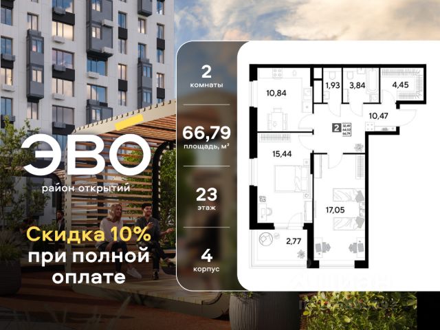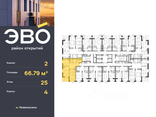 Продается двухкомнатная квартира 65.35 кв.м. в жилом комплексе ЭВО на 18 этаже по адресу: Московская область, г. Реутов, ул. Комсомольская. Скидка 10% при полной оплате!* ЭВО - проект комфорт-класса от девелопера Dogma. Каждый житель сможет открыть для себя максимум возможностей. Совершенствоваться во всех направлениях: физическом, эмоциональном и материальном. В ЭВО можно открыть для себя новые виды спорта, найти единомышленников по хобби, партнеров по бизнесу, развивать в детях новые грани, наслаждаться природой и лаконичной архитектурой. Более 6 га благоустройства в первой очереди! - Зеленый двор без машин, кленовая аллея для прогулок. - Нейродинамические площадки для детей разных возрастов. - Зона уличных тренажеров, столы для пинг-понга, места для занятия йогой. велодорожки и дорожки для скандинавской ходьбы. - Детский сад на 180 мест и школа на 750 мест. - Зона книгообмена - Лобби с зоной ожидания, колясочной и лапомойкой. - Магазины и кафе на первых этажах. БЕЗОПАСНОСТЬ - Закрытая территория. - Круглосуточное видеонаблюдение. - Контроль доступа. РАСПОЛОЖЕНИЕ Пешком - 7 минут до станции Реутов. - 20 минут до метро Новокосино. На машине - 4 минуты до МКАД. - 6 минут до шоссе Энтузиастов. - 9 минут до Носовихинское шоссе. - 13 минут до МСД (Московский скоростной диаметр). СОЦИАЛЬНАЯ ИНФРАСТРУКТУРА В первой очереди предусмотрено строительство детского сада на 180 мест и школы на 750 учащихся. В 10 минутах ходьбы от ЭВО находится детский технопарк "Изобретариум", в котором более 60 научных секции: от IT до промышленного дизайна. Для творческих ребят рядом есть художественная и музыкальные школы, хоровая студия. ОКРУЖЕНИЕ - Реутовский центральный парк, Александровский сквер, Фабричный пруд. - ТЦ "Экватор", ТК "Шоколад". - Спортивный комплекс "Старт", Ледовый комплекс "Реутов Арена". - Музей-усадьба "Кусково". *Подробности уточняйте по телефону.