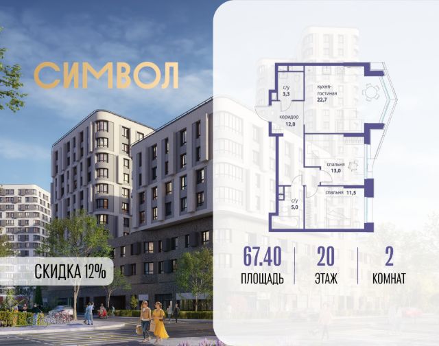 Скидка до 12% действует до 25.12.2025 г. при 100% оплате и не субсидированной ипотеке. Продается 2-комнатная квартира от застройщика: общая площадь 67.40 м², жилая 24.50 м², кухня 22.70 м², 20-й этаж, жилой квартал "Вдохновение", корпус 32 (секция 1). Срок сдачи: 4 квартал 2027 года. Позвоните сейчас и забронируйте квартиру! Квартал бизнес-класса СИМВОЛ - это городское пространство нового поколения в историческом районе Лефортово, на границе ЦАО, в 2 км от Садового кольца. Бионическая архитектура СИМВОЛА превратила Лефортово в суперсовременное и модное пространство. Из окон, с балконов и террас просторных квартир СИМВОЛА открываются отличные виды на город и новый парк "Зеленая река", "протекающий" через все кварталы комплекса на 2 км. В квартале уже есть все, что нужно для комфортной жизни: кафе и рестораны, супермаркеты и магазины, медицинские и физкультурно-оздоровительные центры, салоны красоты и барбершопы, аптеки и оптики, химчистки, пункты доставки и другие сервисы - всего более 90 действующих объектов внутриквартальной инфраструктуры. Для юных жителей СИМВОЛА открыты детский сад и инженерный лицей при МГТУ им. Баумана. Особенности квартала: • Свой парк "Зеленая Река" - 10 га зелени и развлечений на любой вкус! • Уникальная для Москвы архитектура - Проект создан архитектурной мастерской ATRIUM по дизайн-коду британских бюро LDA Design и UHA London. • Богатая инфраструктура с детскими садами и лицеем им. Баумана, кафе и ресторанами, супермаркетами и аптеками, зоной для фитнеса, бассейном и мед. центром. • Квартиры с панорамными окнами, террасами, ванными с окнами и каминами редких форматов. • Закрытые безопасные зелёные дворы-парки без машин! Купить 2-комнатную квартиру в новостройке рядом с метро Римская.
