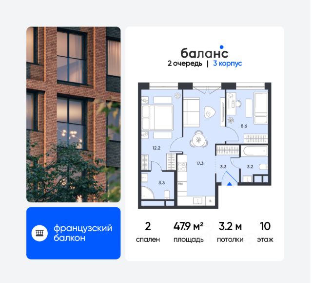успей купить по семейной ипотеке 2-комнатную квартиру на 29 этаже во 2-ой очереди жк баланс жилой квартал баланс находится в ювао. и это круто. вот почему. ювао один из развитых районов москвы, где активно идет редевелопмент: строятся новые кварталы с инфраструктурой и современной архитектурой. путь от 2-ой очереди баланс до метро окская займет всего 3 минуты пешком, а до метро рязанский проспект 13 минут. рядом несколько автобусных остановок. за полчаса можно добраться до центра москвы или парков кузьминки, кусково. баланс жилой квартал, продуманный до деталей: в каждом корпусе предусмотрено лобби с коворкингом. представь: спускаешься с утра на лифте - и все, больше ехать никуда не надо: выбираешь стол, за которым сегодня работать, подключаешься к вай-фаю - и готово. на первом этаже отдельные помещения для хранения детских колясок и велосипедов. между квартирами светлые холлы. керамогранитный пол, энергоэффективная подсветка и цветовые акценты. никакой монотонности. на территории зеленые супер-дворы со спортивными площадками, детскими зонами и пространством для отдыха. в центре кварталов расположится благоустроенный парк с фонтаном и удобной уличной мебелью. все квартиры 2-ой очереди баланс без отделки, что позволит сделать все так, как нужно тебе. а эффективная планировка твоей квартиры в баланс поможет удобно организовать пространство. 2-комнатная квартира в новостройке рядом с метро Рязанский проспект.