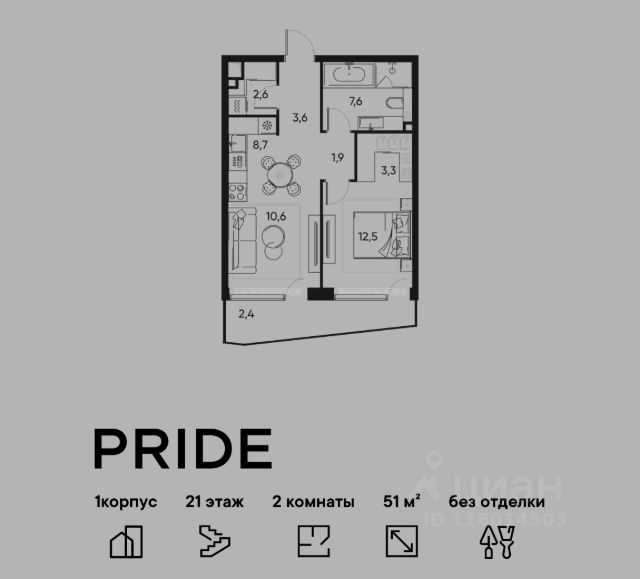 В премиальном жилом квартале Прайд продается 2-комнатная квартира в 1 корпусе, на 11 этаже, в секции 4. Её общая площадь составляет 47.7 м². Пространство включает 1 уютную спальню 14,6 м², просторную кухню-гостиную 21,7 м² и ванную комнату 5,7 м². Ключи в 2026 году. Удобная локация: Жилой квартал расположен в 15 минутах от Цветного бульвара в историческом районе Марьина Роща. До любой точки города быстро и удобно добраться, как на общественном транспорте, так и на авто — комплекс находится всего в 3 минутах от ТТК и в пешей доступности от метро. Яркая архитектура с переменной высотностью от 7 до 22 этажей от именитого бюро APEX формирует запоминающийся облик проекта. Развитая инфраструктура: Территория квартала делится на несколько отдельных частей: открытый просторный бульвар 3500 м² для прогулок и два внутренних камерных двора. Внутри предусмотрены площадки для спорта, места для игр и тихие пространства для отдыха и неторопливого общения. Коммерческие и торговые помещения спроектированы на уровне первых этажей: супермаркеты, магазины, рестораны и кофейни, барбершоп, спа-салон и другие сервисные точки. Образовательный центр со школой на 257 учеников и детским садом на 112 мест на собственной территории квартал - идеальное решение для семей с детьми. Таким образом, внутренняя инфраструктура Прайд обеспечит все базовые потребности будущих жителей. Благоустроенная территория: Ландшафтный дизайн с многоуровневым и замысловатым озеленением будет радовать жителей на протяжении всех сезонов — богатая флора дворов включает в себя несколько десятков видов растений. Лобби как в лучших отелях мира: На первых этажах резидентов и гостей встретят лобби с авторским дизайном от Sundukovy Sisters, бюро знаменито своими работами для отелей и ресторанов премиум-класса во всем мире. Надежный застройщик: Девелопер PIONEER — компания с 24-летней историей. В портфеле — 40 проектов жилой, коммерческой, социальной и многофункциональной недвижимости в Москве и Санкт-Петербурге. С 2001 года было реализовано 2,9 млн м². В настоящее время 1,6 млн м² находятся в стадии проектирования и строительства. Среди новых знаковых проектов девелопера — премиальные жилые кварталы и деловые объекты класса A.