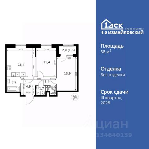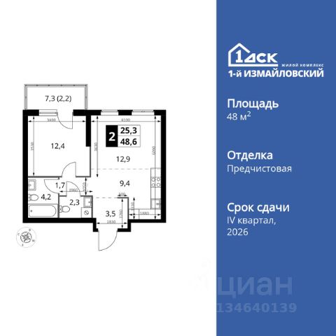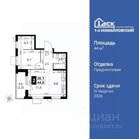 Прямая продажа от застройщика! Жилой Комплекс Комфорт класса. Продаётся 2-к квартира номер 379 общей площадью 55.1 кв.м. на 2-м этаже 23 этажного здания. Отделка Whitebox. Цена с учётом скидки. Особенности квартиры: - Мастер-зона с санузлом. Уют и комфорт в одном пространстве. - Угловая планировка - больше пространства для ваших идей. - Увеличенное количество окон - дополнительное освещение и свежий воздух. - Угловое остекление - свет и воздушность в каждой комнате. - Гостевой санузел - комфорт и удобство для ваших гостей. - Евроформат - просторное и удобное жилье с отличной планировкой. - Гибкая планировка - создайте пространство по своему вкусу. - Место для игры/занятия спортом - идеальное пространство для активных детей. - Можно оборудовать рабочее место - комфорт для работы и учёбы. - Можно сделать распашные двери - удобный доступ и стильный акцент. - Просторная мягкая зона - комфорт и уют для отдыха всей семьи. - Кухня-гостиная - идеальное пространство для встреч с близкими. - Наличие острова на кухне - удобство и стиль для вашей кухни. - П-образная утопленная кухня - оптимальное решение для большой семьи. - Возможность добавить спальное место - дополнительный комфорт для гостей. - Ниша под шкаф - компактное и удобное место для вещей. - Лоджия - уютное место для отдыха и тишины. - Просторная лоджия - идеальное место для уютных вечеров. Квартира с предчистовой отделкой (White box). Вам не придется заниматься черновыми и трудоёмкими работы, а чистовую отделку и дизайн - сделайте на свой вкус. Информация о комплексе: Современный архитектурный проект "1-й Измайловский" - идеальное место для проживания, расположенное в восточной части Москвы в окружении 14 000 гектаров леса. Комплекс пронизан атмосферой здорового образа жизни и благополучия. Сиреневый сад и близлежащие лесопарки - это места, где можно насладиться лыжными прогулками зимой и тонизирующими пробежками летом. Расположенный между Щелковским шоссе и Амурской улицей, "1-й Измайловский" осмысляет себя не столько через близость к городским точкам притяжения, сколько через соседство с зелеными пространствами и спортивными объектами. Он отгорожен от шоссе застройкой первой линии и собственными садами здоровья. В его окнах - изумрудное море парка "Лосиный остров" и густые кроны окрестных дворов. В его графике - занятия спортом и прогулки в Измайлове. Транспортная доступность: Не более 2,5 км до станций метро "Щёлковская" и "Черкизовская" и МЦК "Локомотив". Щёлковское шоссе соединяет квартал с Северо-восточной хордой и МКАД, Центральным автовокзалом и Восточным железнодорожным вокзалом. Две автобусные остановки в паре минут ходьбы и 11 маршрутов общественного транспорта. На автомобиле 3 минуты до СВХ 12 минут до ТТК 15 минут до Садового кольца Внутренняя инфраструктура: Комплекс находится в исторически сложившемся районе Москвы с хорошим качеством и плотностью инфраструктуры. Торговые центры и сетевые магазины -6 детских садов, включая собств Купить 2-комнатную квартиру в новостройке рядом с метро Щелковская.