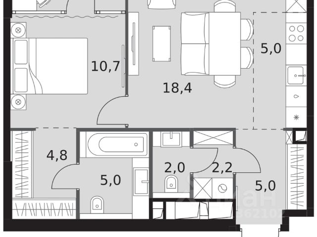 Продаётся просторная 2-комнатная квартира евроформата в ЖК HEADLINER, общей площадью 81,4 кв. м, на 35 этаже. Высота потолков 3 м. В квартире расположена просторная кухня-гостиная и 2 спальни, одна из которых представляет собой приватный мастер-блок с собственным санузлом и вместительной гардеробной. Также в квартире предусмотрен гостевой санузел и ниша для гардеробной во входной зоне. Из окон квартиры открывается панорамный вид на Москва-реку и пешеходный бульвар. Квартира продается без отделки. Дом сдан. Квартал HEADLINER находится в Пресненском районе ЦАО, рядом с м. "Шелепиха". В непосредственной близости Москва-Сити. Рядом находятся парк Причальный и Шелепихинская набережная. За 5-10 минут на автомобиле можно добраться до парков Фили, Красногвардейские пруды, Красная Пресня и парка Победы. В пешей досягаемости - ТРЦ "Афимолл Сити", ТРЦ "Филион", ТРЦ "Европейский", World Class, а также вся инфраструктура ММДЦ "Москва-Сити". На территории ЖК расположен филиал частной аккредитованной школы полного дня "Путь к успеху". В непосредственной близости расположены лучшие школы ЦАО: ГБОУ "Романовская школа", физико-математическая школа 56 им. академика В.А. Легасова, школа с углубленным изучением английского языка 1232 "На Кутузовском". Особенности ЖК: - Потрясающие видовые характеристики открываются на "Москва-Сити", Москву-реку и панораму центра столицы; - 8 минут пути до набережной Тараса Шевченко с живописными видами на Headliner и Деловой центр; - Разная высота корпусов: от 5 до 51 этажа с уникальным внешним видом; - Потолки от 3 м; - Доступны варианты как с отделкой white box, так и без нее; - 80% квартир имеют ширкоформатные окна; - Вместительный двухуровневый подземный паркинг с кладовыми; - Лаунж-зоны с каминами и стильной мебелью; - Колясочные и гостевые уборные; - Концепция "дворы без автомобилей"; - Консьерж-зоны в подъездах; - Видеонаблюдение, круглосуточная охрана.